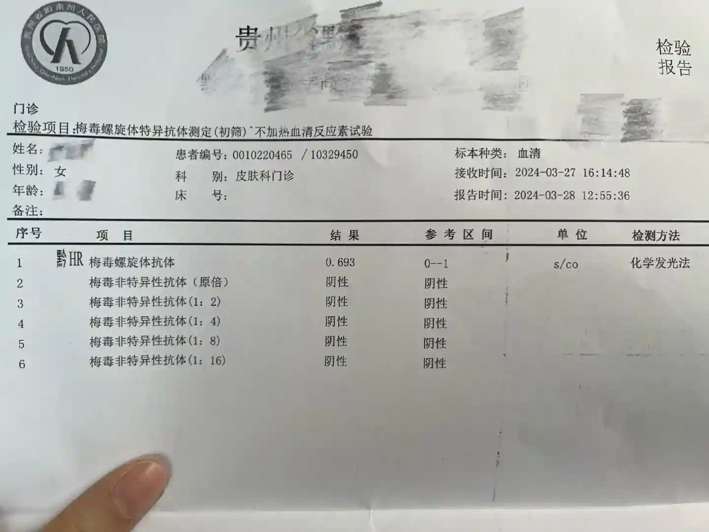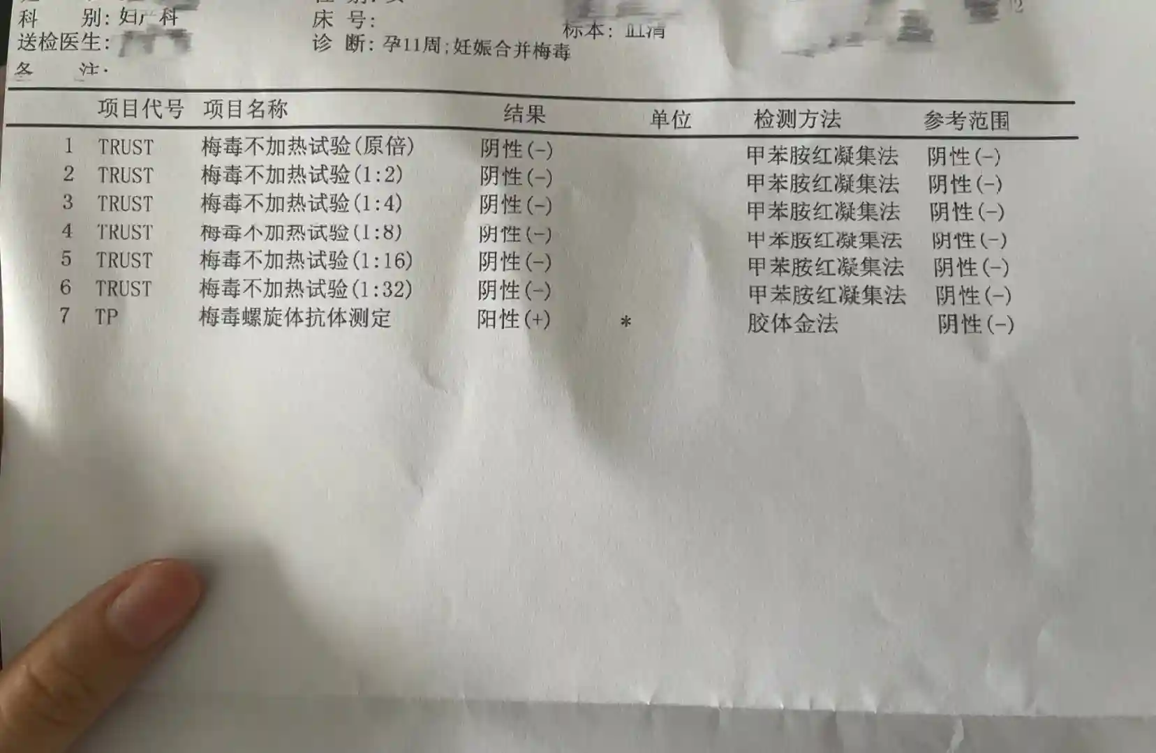 图1是去领取怀孕建档的检查报告,单子上医生标的梅毒抗体弱阳