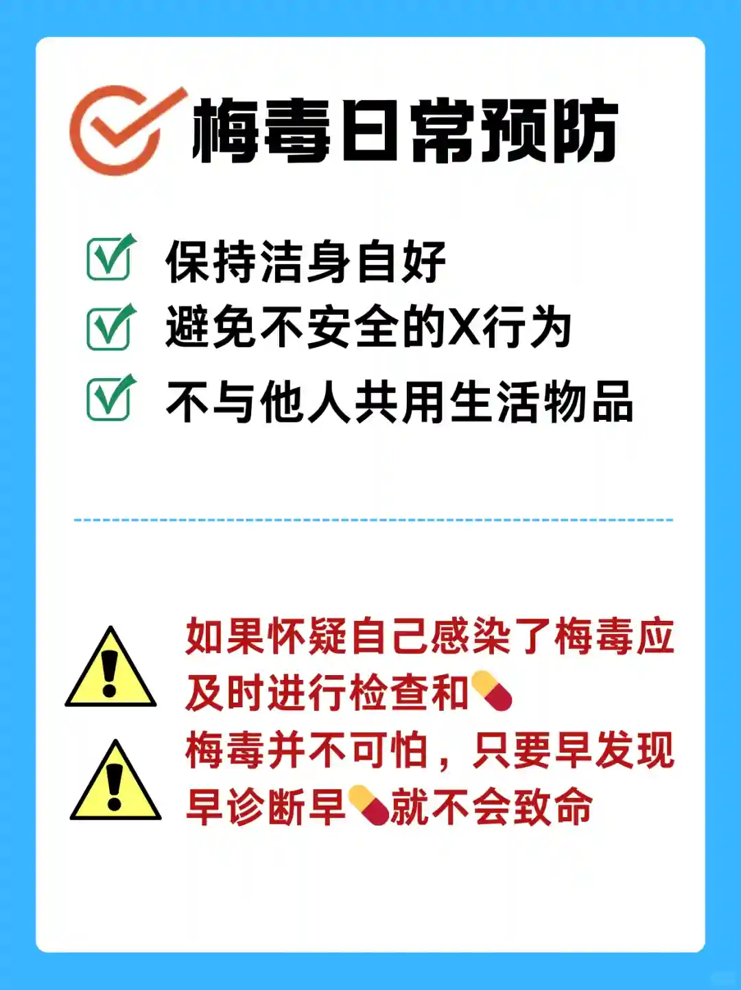 梅毒并不可怕,只要早发现、早治疗、就不会致命"