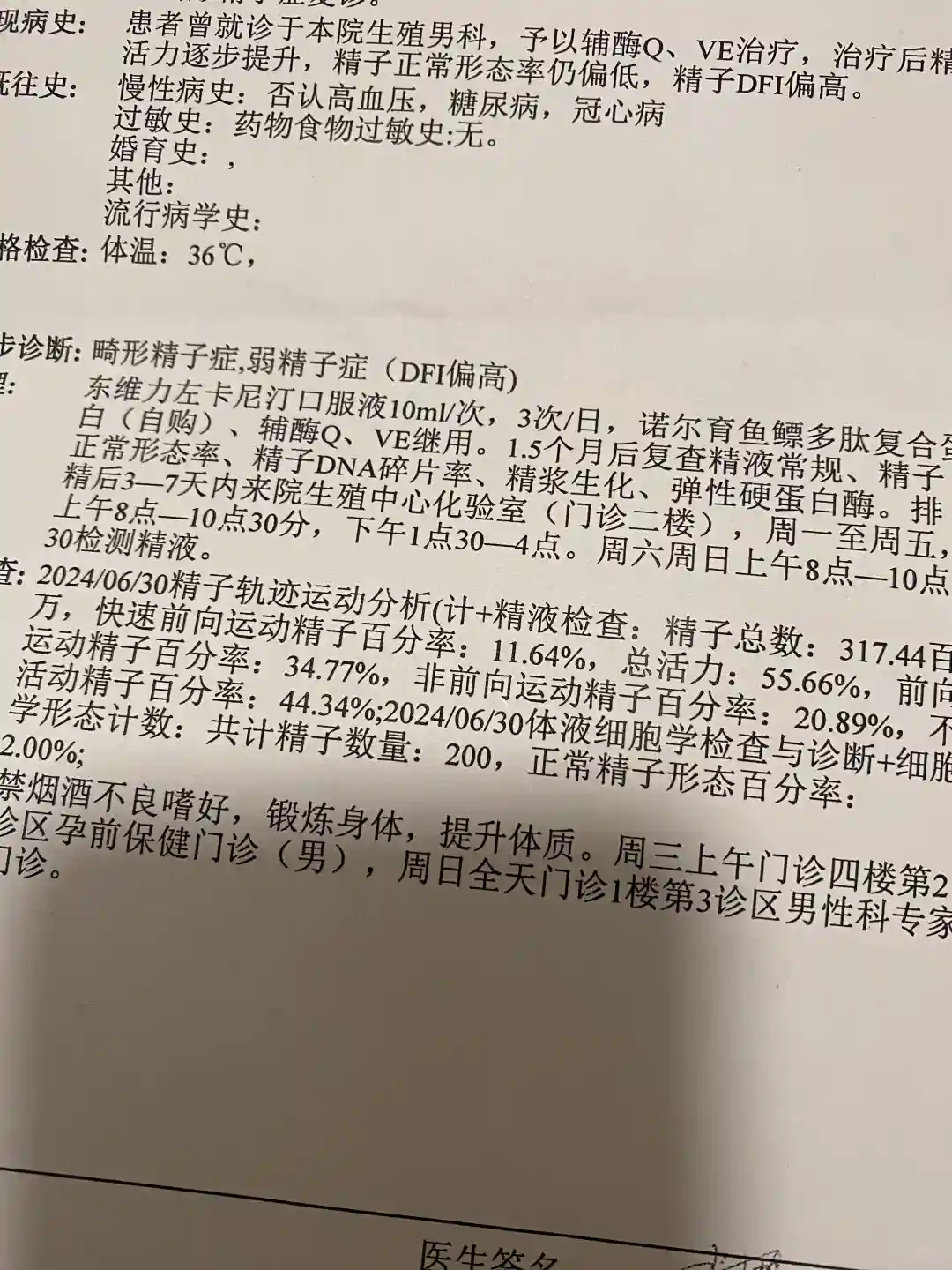 23年1月新冠高热后,备孕检查精子质量很差(图一),吓自己一跳,医生建议辅酶Q10,维生素E,服用三个月;
