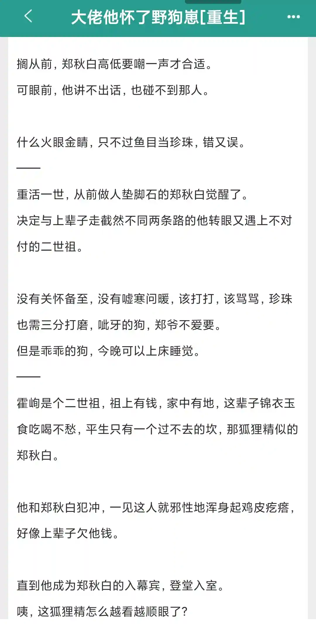 我不怕它的雷点,什么双非有白月光等等我都不怕,文笔好啥禁忌都没有,但是文笔好不好真的很明显,不知道现在jj是怎么了,什么东西都在榜单上,我真的已经很努力了后面还有四五十章,看不下去了,也不知道是什么让我看下去的,可能是真的饿了吧