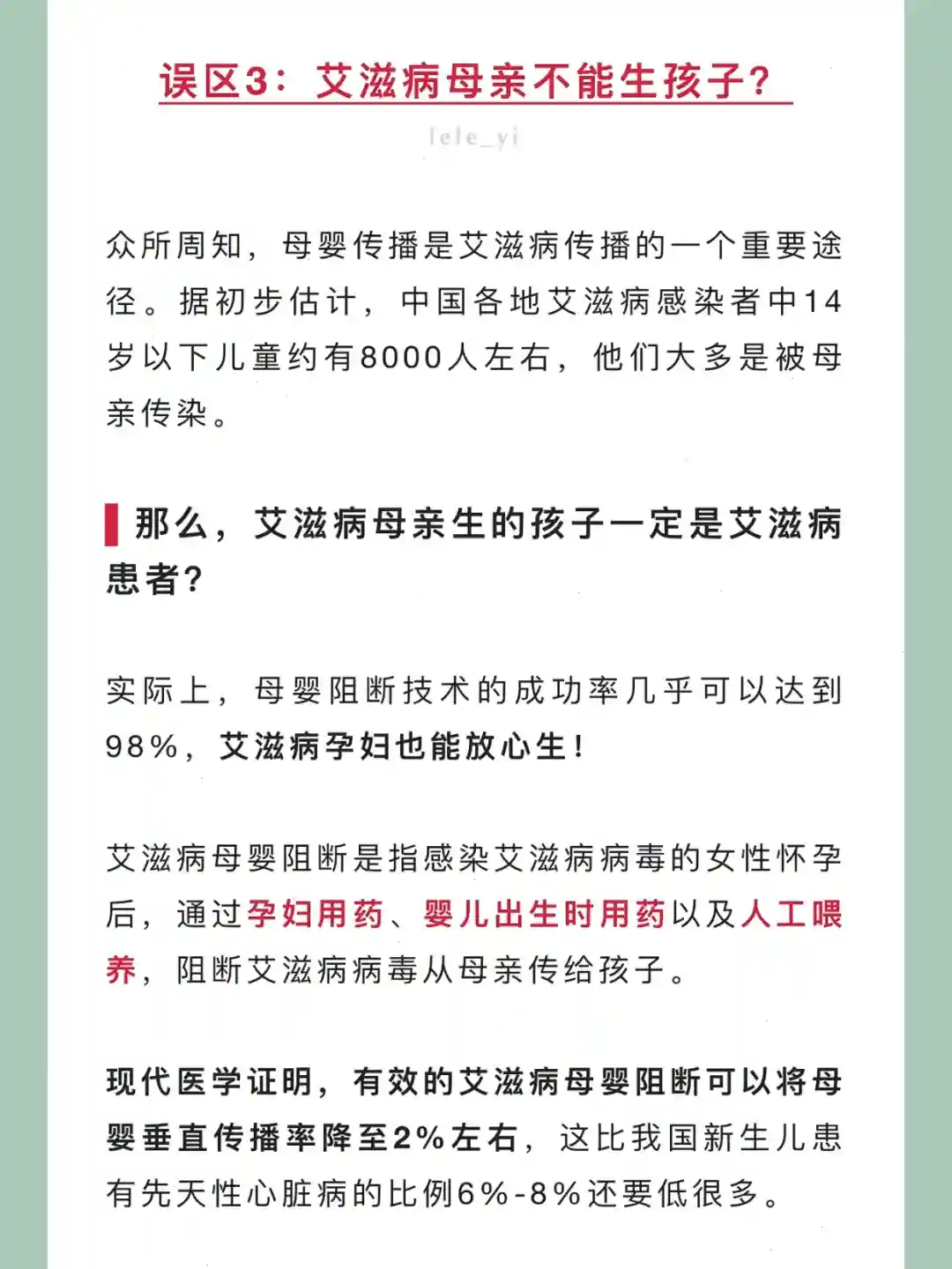 母婴阻断技术的成功率几乎可以达到98%,艾滋病孕妇也能放心生!