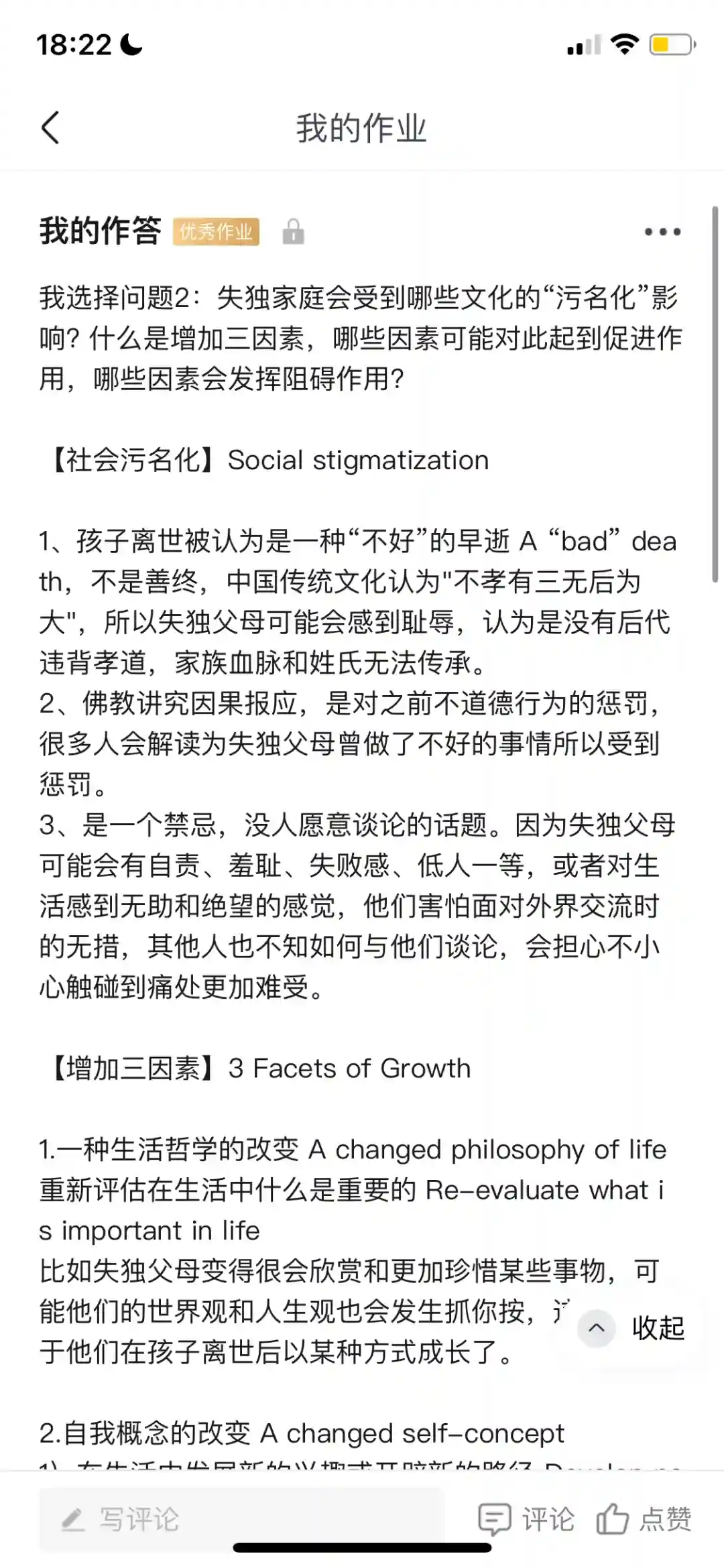 作业题目是:失独家庭会受到哪些文化的“污名化”影响? 什么是增加三因素,哪些因素可能对此起到促进作用,哪些因素会发挥阻碍作用?