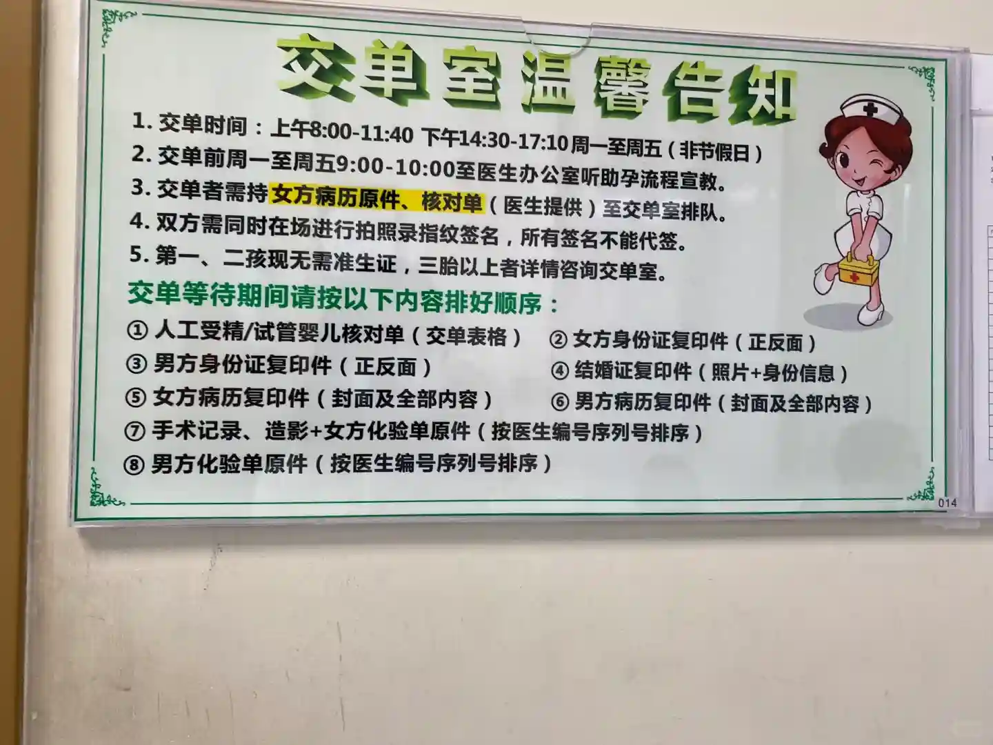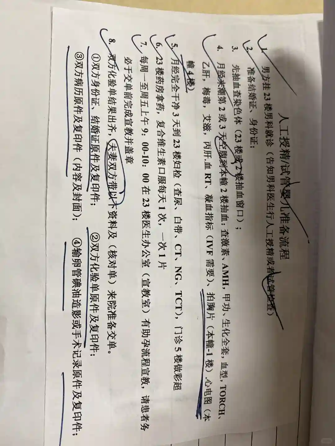 !!前期有做过的体检报告最好都带上,如果有还能用的就省了一笔费用!!①姨妈期第2或第3天挂生殖科门诊(在医院23楼)
