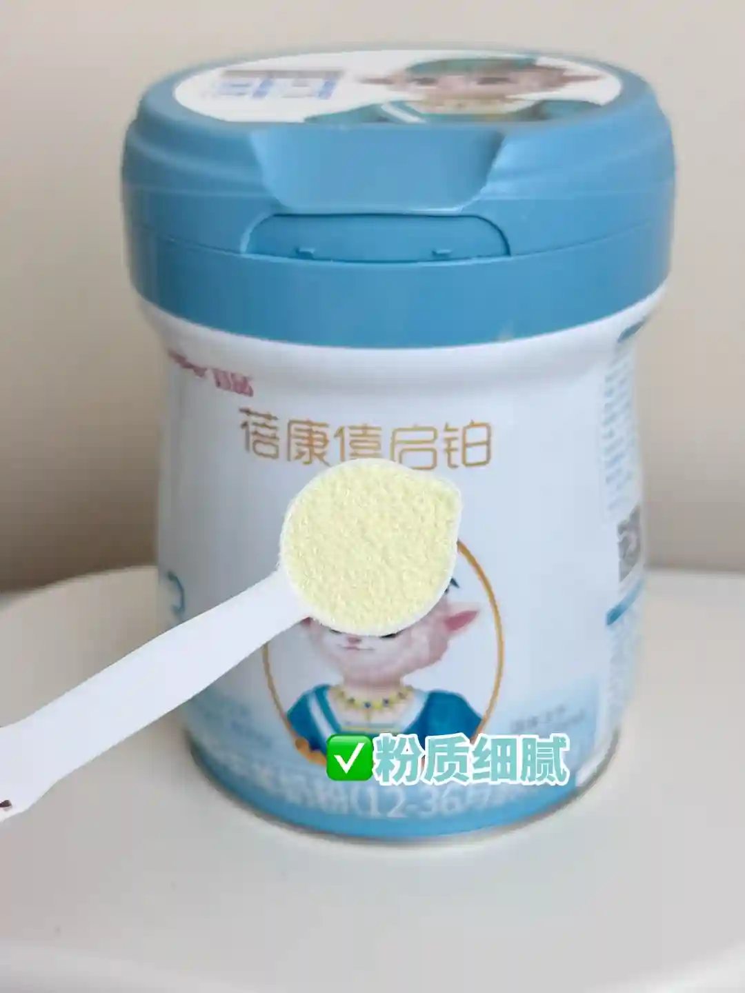 优秀点还有:这款奶粉粉质蓬松细腻,溶解速度快。采用的是真空闪蒸脱膻技术,口感处理上完全没有膻味,每次泡奶的时候都是自然清香的奶味,小家伙炫的可快了,一滴不剩!