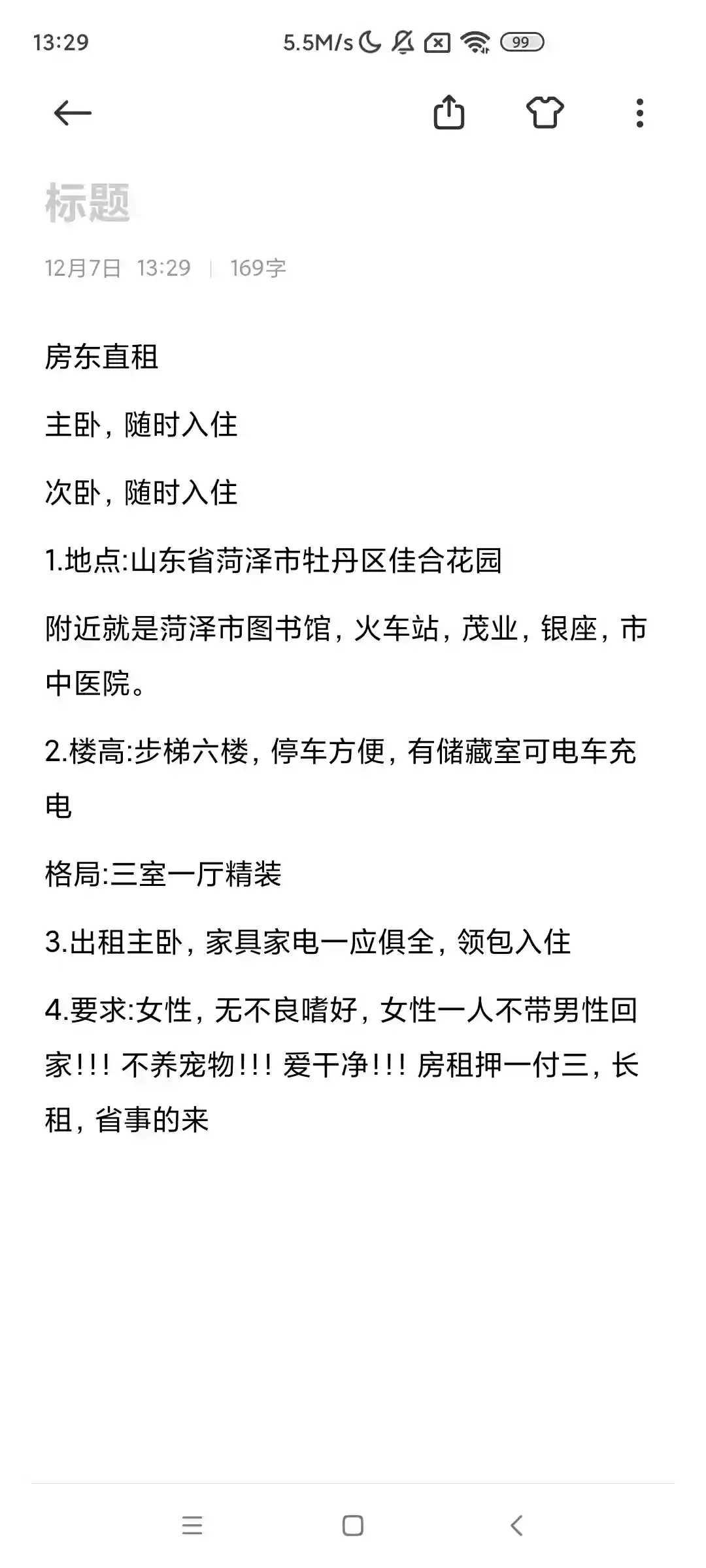 菏泽佳合花园女生合租