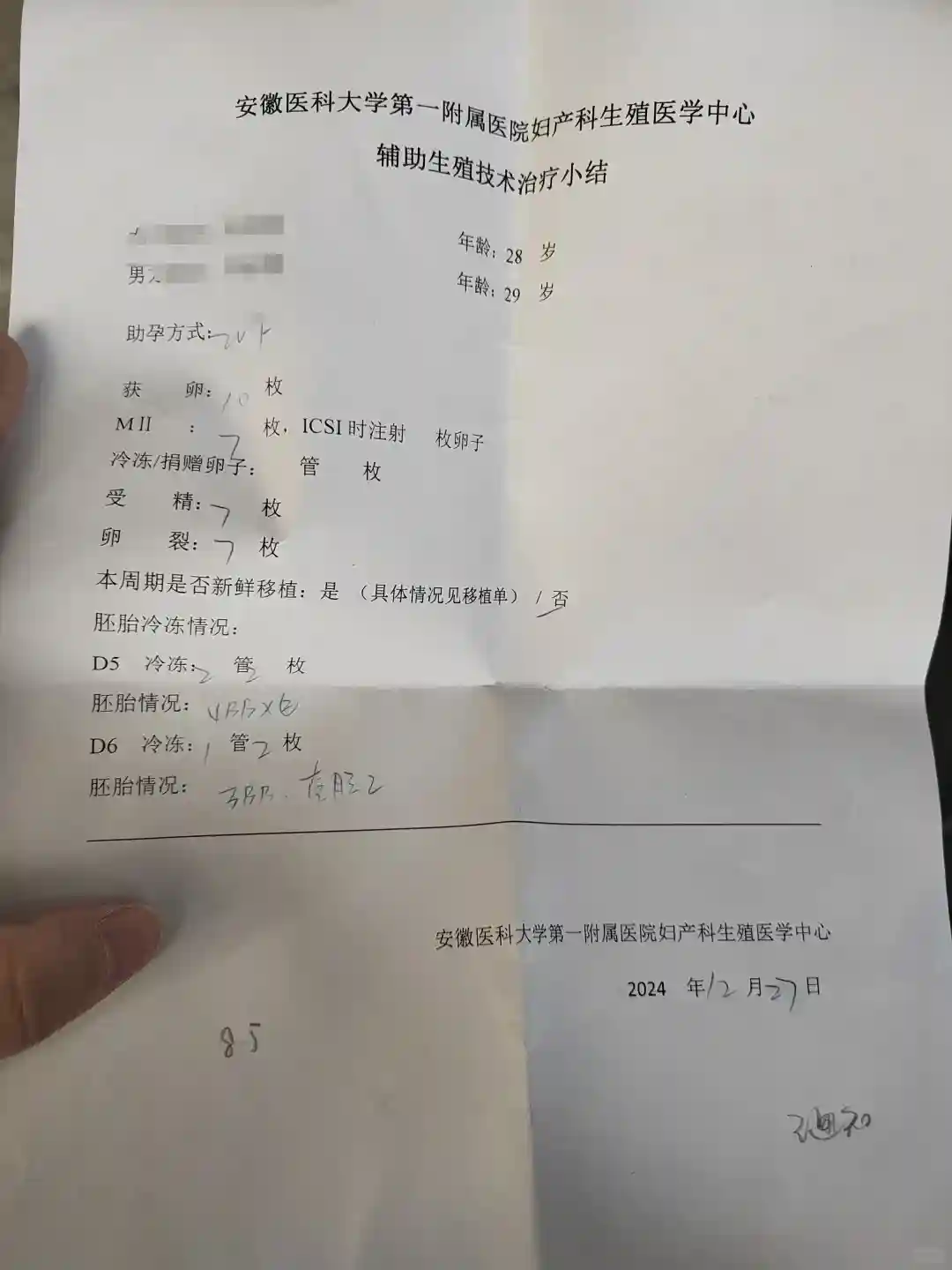 安医胚胎结果终于出来了(取卵第七天)