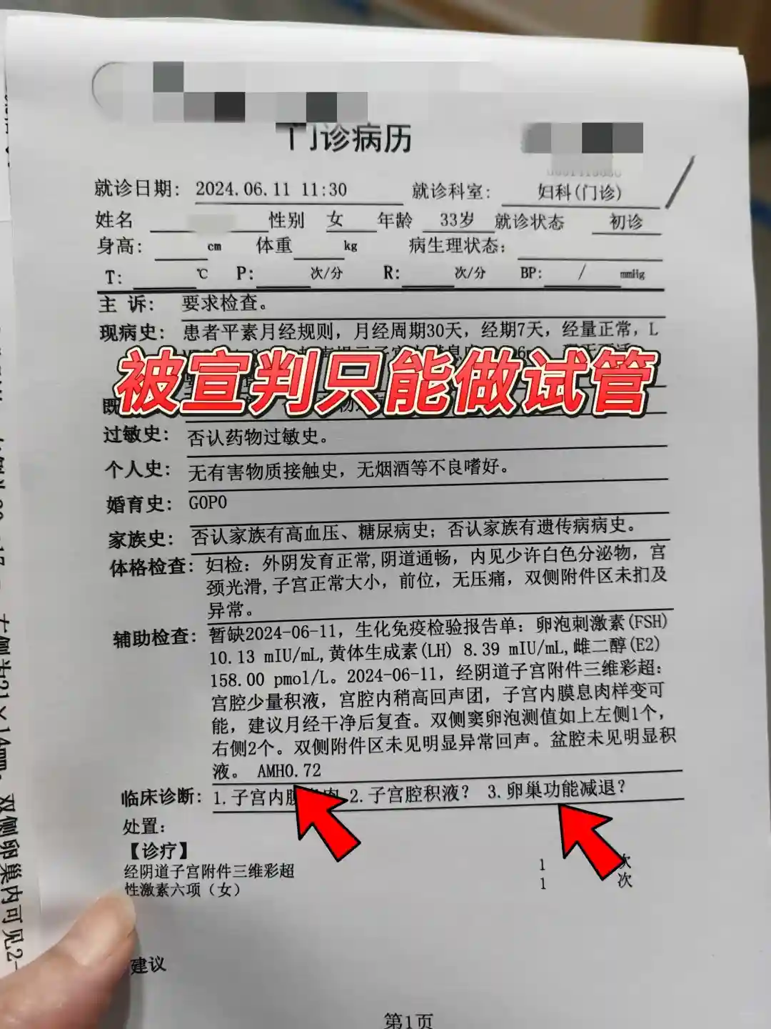 初见程女士,结果很不好:双侧窦卵泡数才3️⃣个,卵巢功能衰退,自然受孕的可能性......
