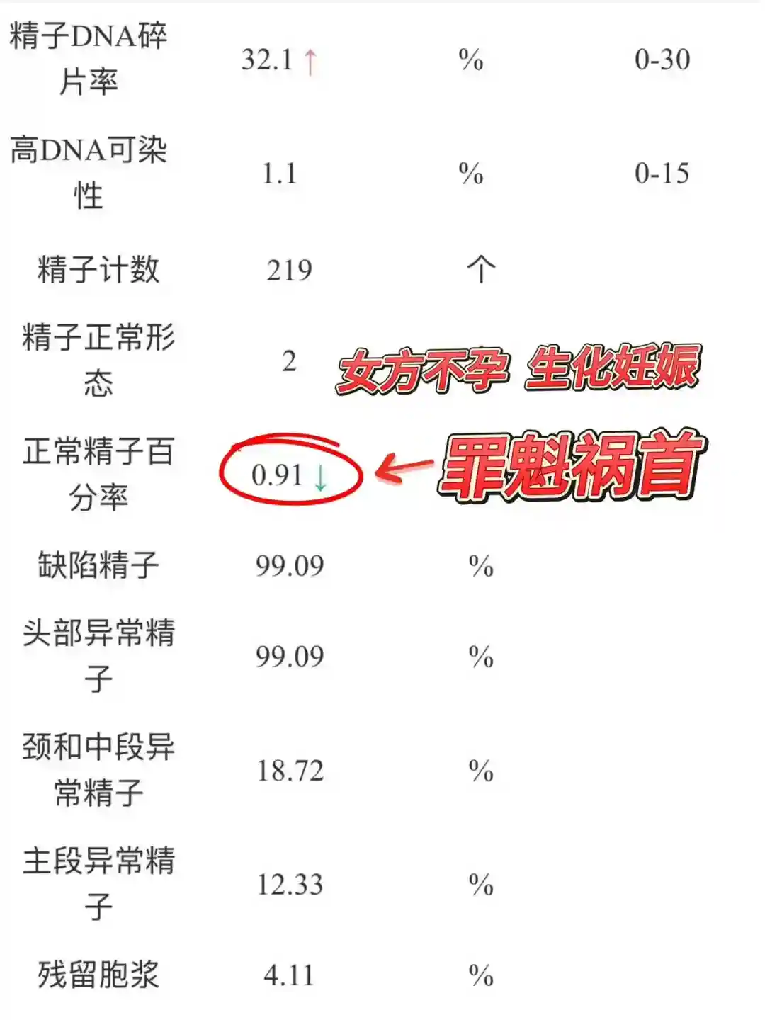 🤦 丈夫小蝌蚪的质量也不行,正常形态不到1%