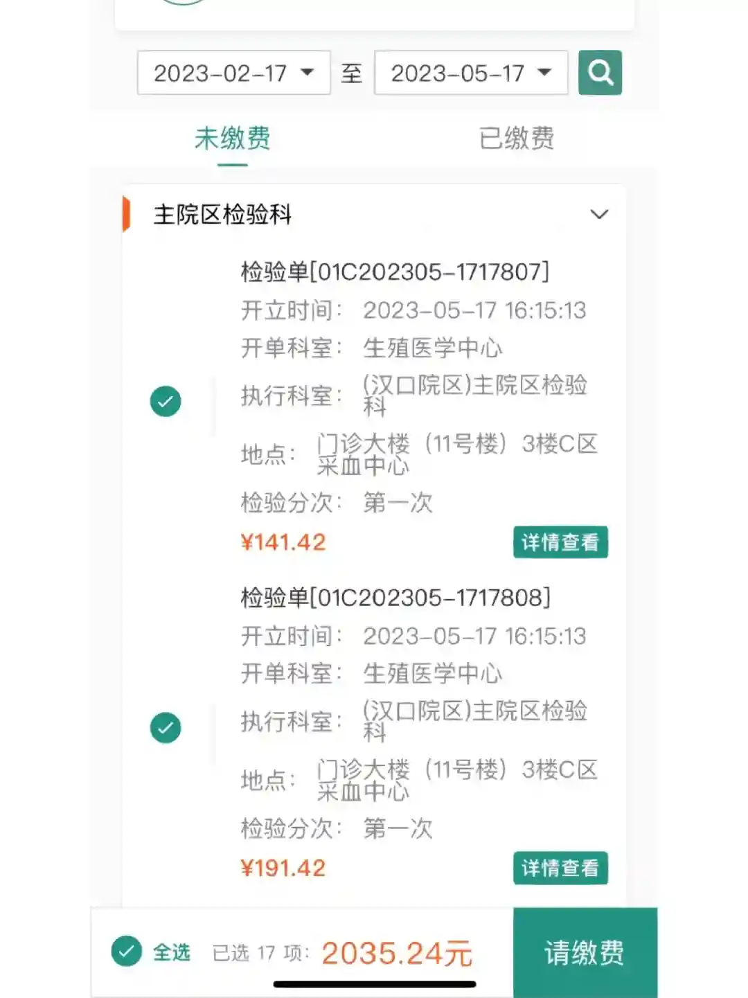 男女双方需要检查的项目,只要是三甲医院一年内的检查结果都有效,一次性让护士把我所需做的项目都给开了,准备找两天时间专门做检查,因为有项目需要在经期第二天检查,目前我开出的检查项目单子总费用2035.24元。男方的检查不包括在内,所有开出单子的项目可以在检查之前缴费,有效期三个月。
