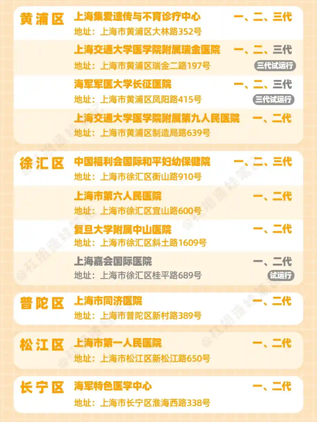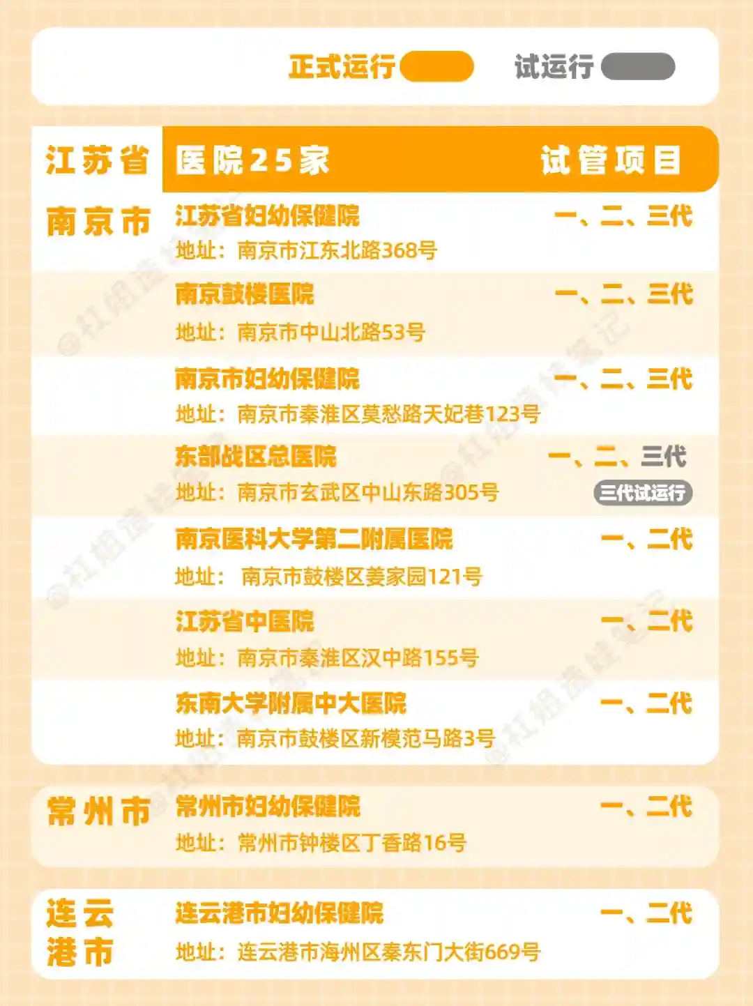 7家医院,可以做三代试管(有1家试运行)