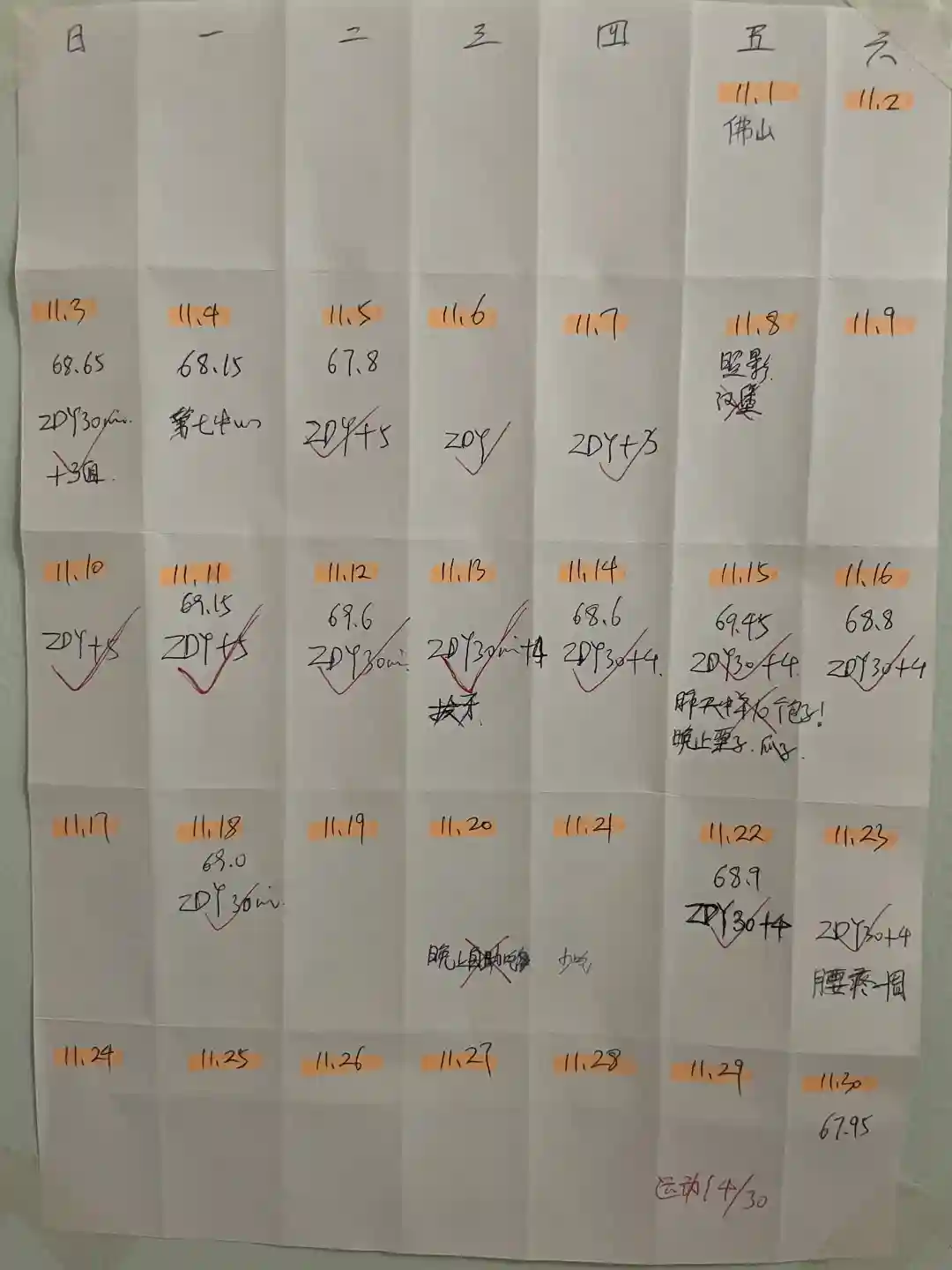 运动:从4月份记录开始,一共运动了120次。可能动作不对或者身心太疲惫的原因,11月腰突然疼到起不来,过了一星期好了。