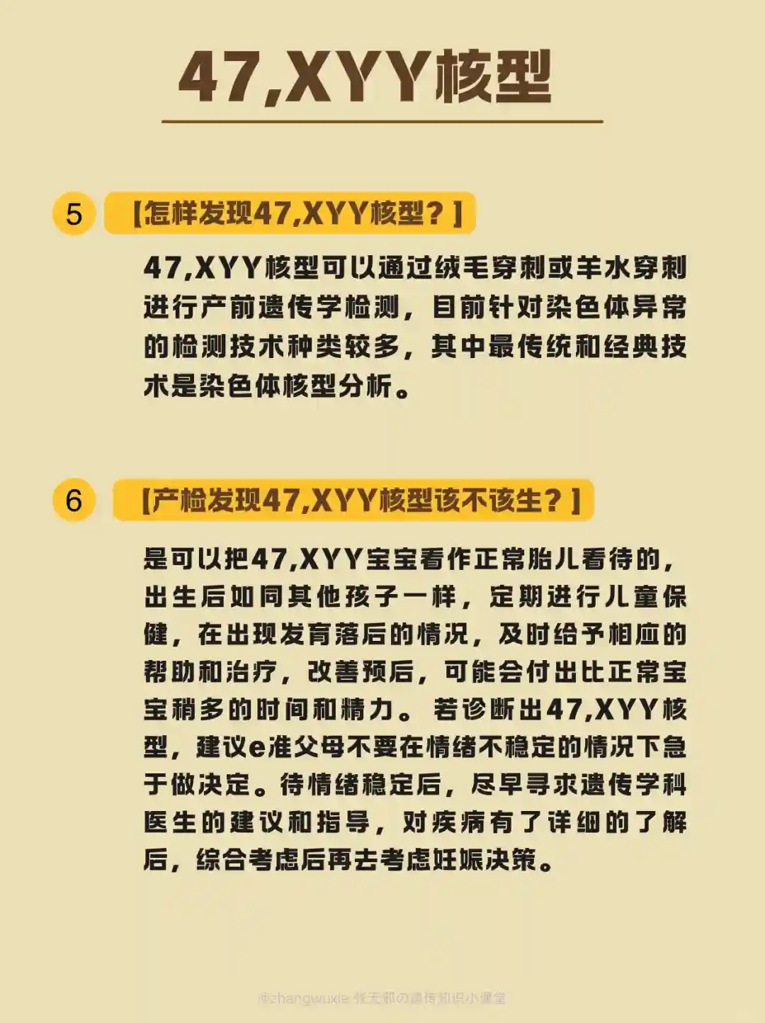 若诊断出47,XYY核型,建议准父母不要在情绪不稳定的情况下急于做决定。待情绪稳定后,尽早寻求遗传学科医生的建议和指导,对疾病有了详细的了解后,综合考虑后再去考虑妊娠决策。本分享内容皆参考自各大科普号,几乎无原创