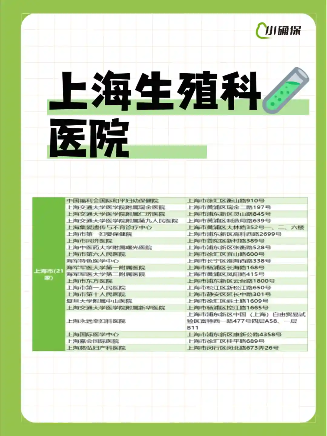 上海🧪医院整理:21家权威机构一网打尽 三代试管遗传筛查