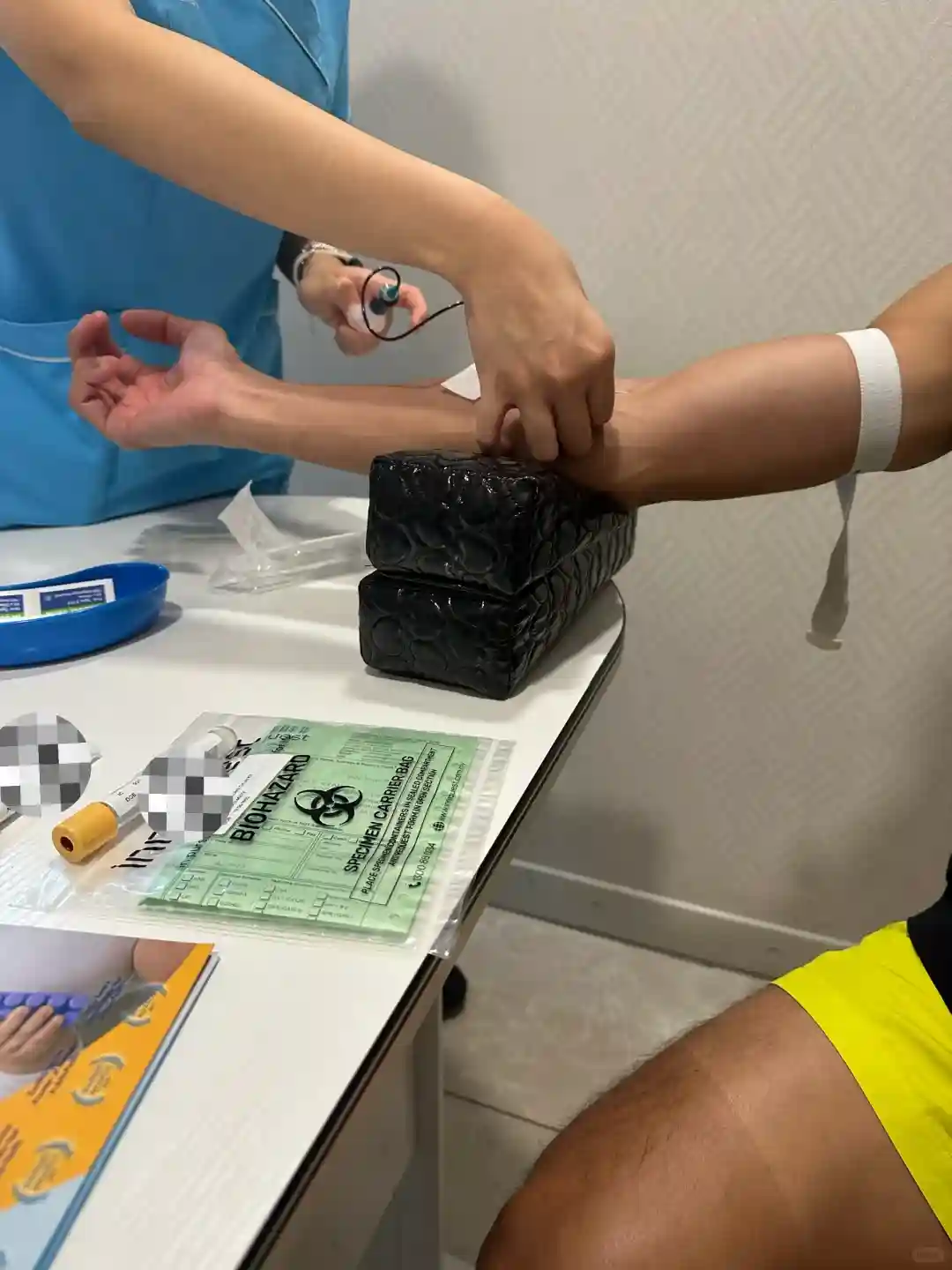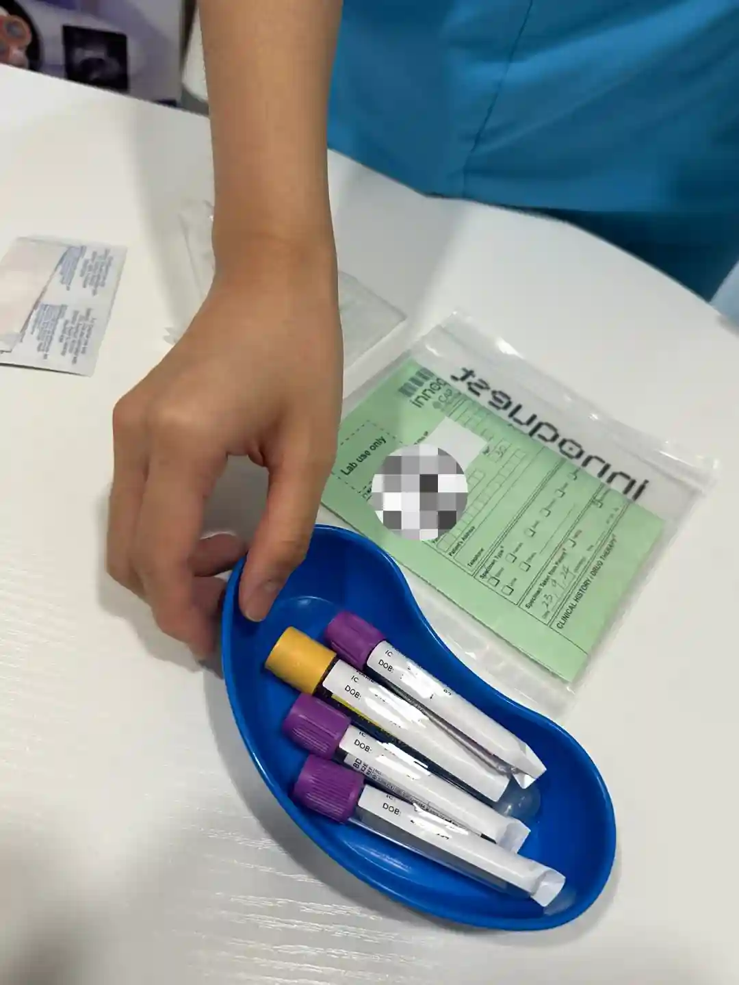 见了医生之后我们也和医生表示我们想要直接🧪了. 医生让我们到外面和护士谈谈费用方面和整个流程. 取了4管血做checkup. 传说中的爱马仕包包也领上了