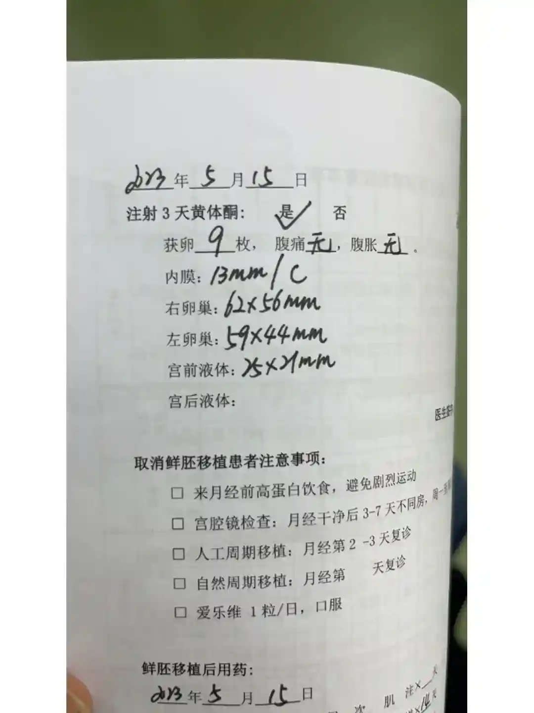 🐨然后去二楼四诊检查。看看卵巢情况和有没有积水。图2,我有点积水。但是不影响移植。移植后多吃蛋白质。