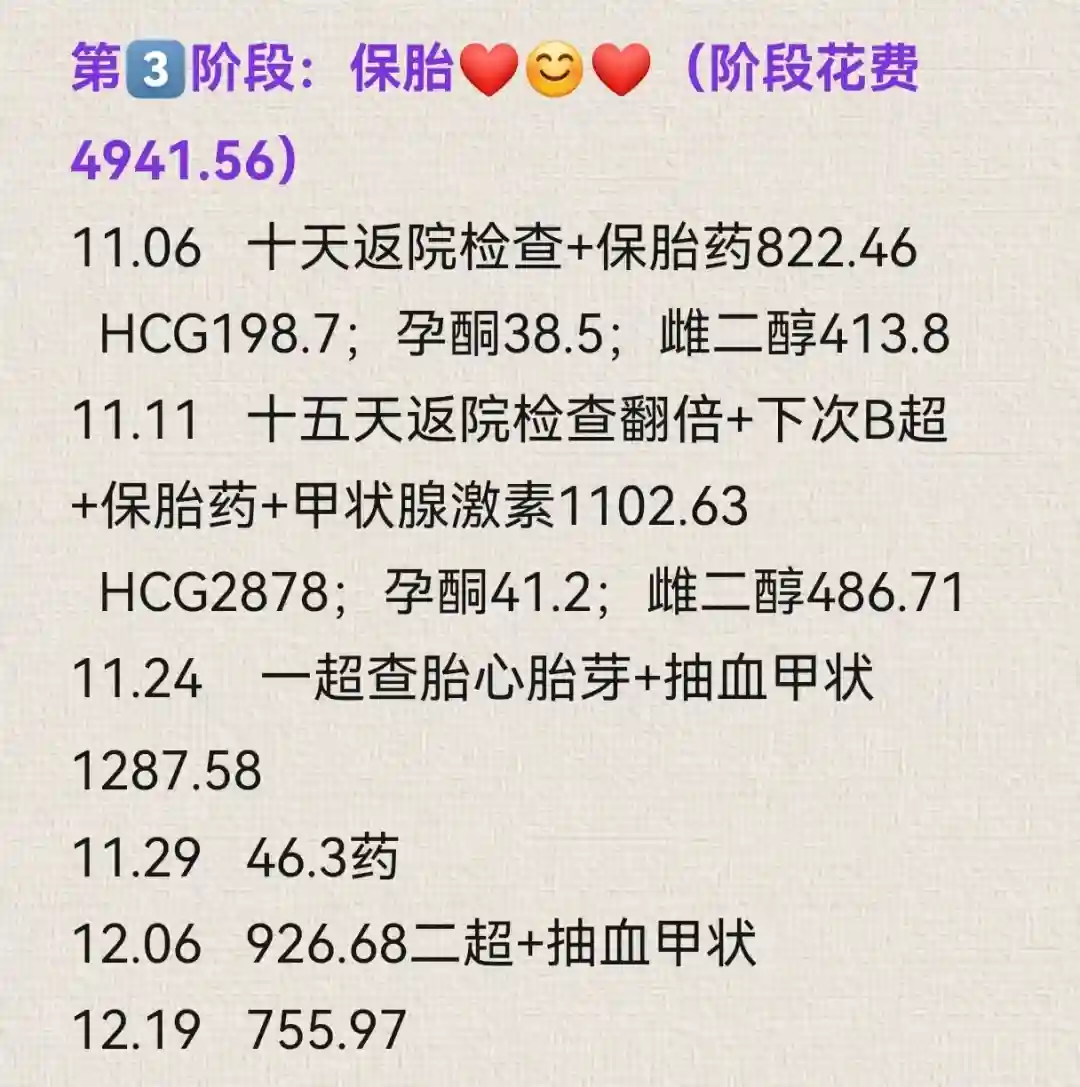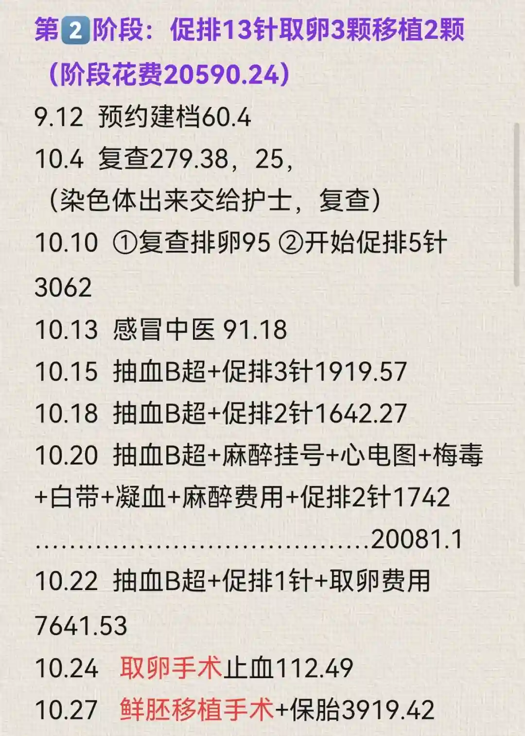 10月底移植(术后一月打达菲林一针,促排13针,监测卵子6颗,实际取卵3颗,受精达到移植要求2颗,取卵三天后鲜胚移植2颗;移植后第三天开始正常工作)🙏🏻