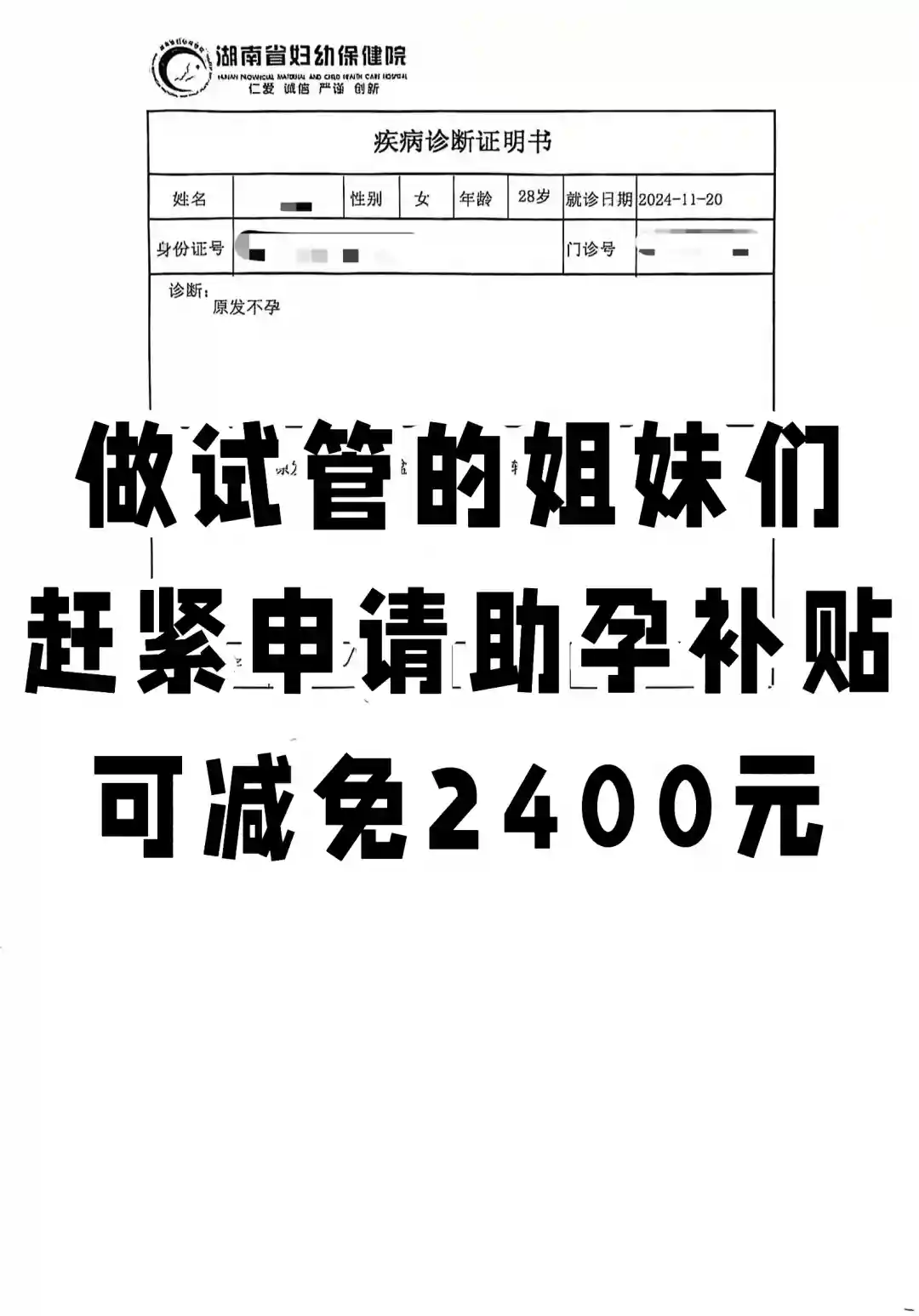 做试管的姐妹们,助孕补贴2400都领了嘛