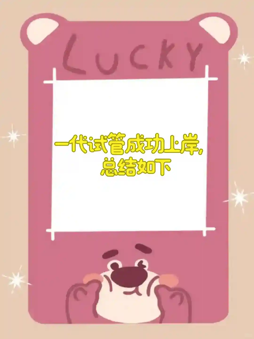 🎈总的来说,我的试管经历没有想象中的那么痛苦,打针抽血都是可以忍受的痛,唯一觉得无麻取卵的过程中较难以忍受(全程10分钟,取卵数量14个,正常水平,无腹水),取卵后的两三天内肚子会有不适感,疼痛感在可接受的范围内。孕十周左右去做二超,生殖医学科就毕业了