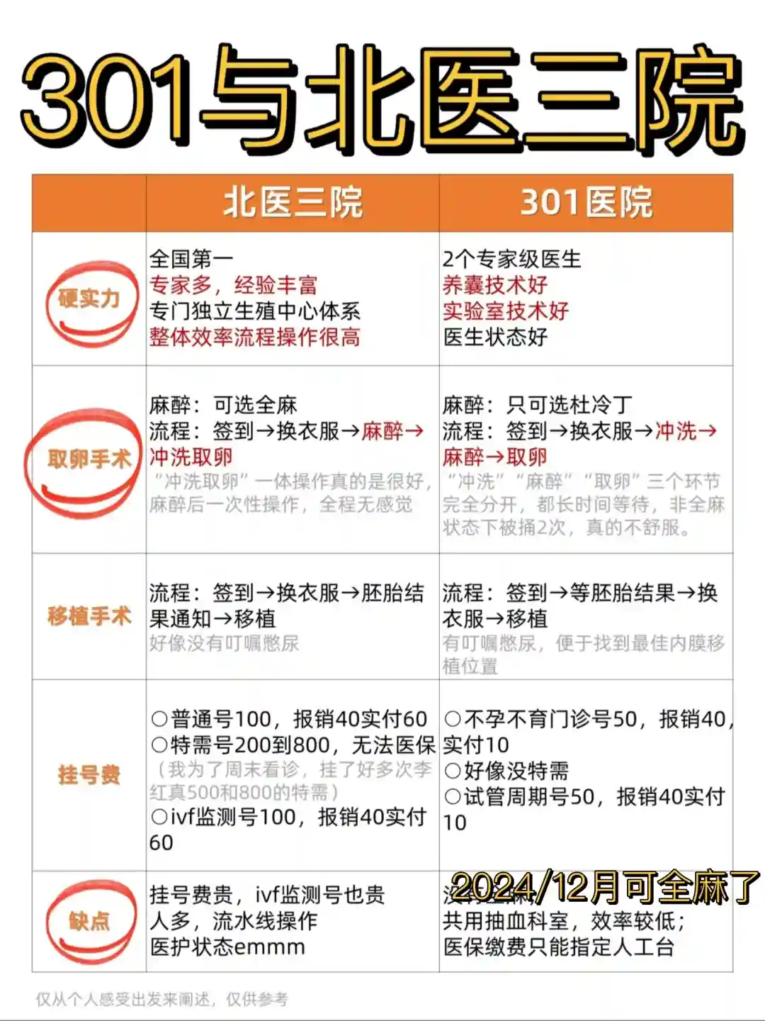 1️⃣不能说谁更胜一筹,只能说各有千秋!!#北医三院 #301医院 还是得看个人自己的情况和需求,对症选择医院。北医三院全流程都非常成熟,301医院实验室是真的好!