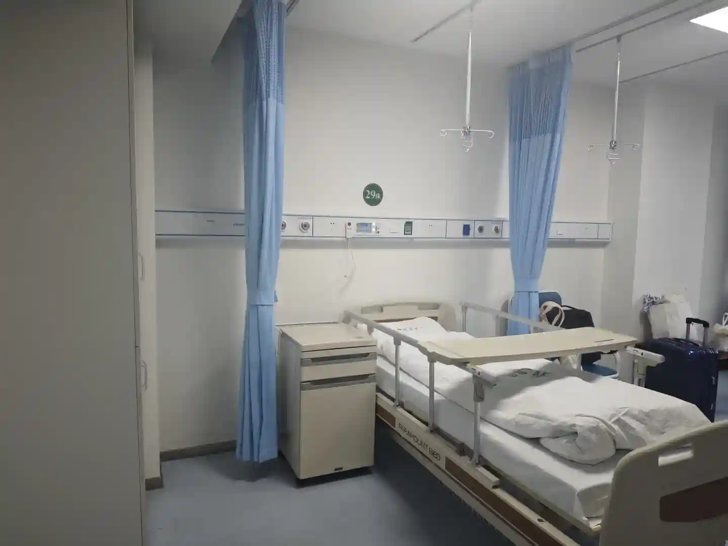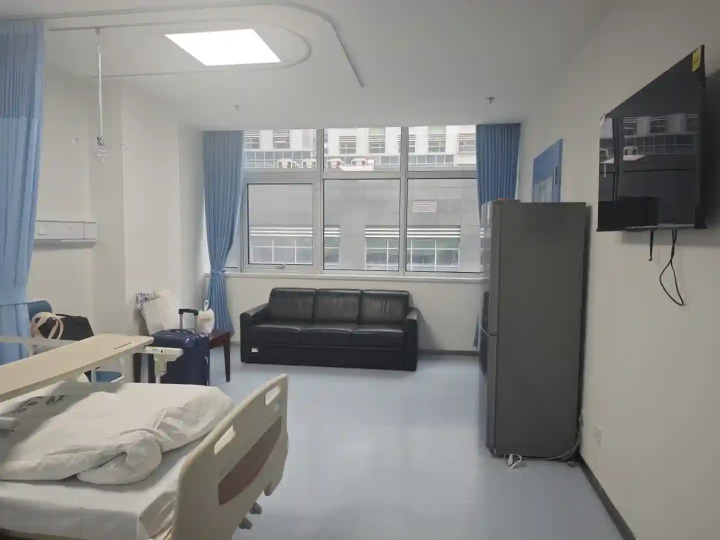 房间:生殖科住院部9号楼6楼的病房分两种,三人间,38/晚;单间480/晚。如果住单间要提前和办理入住的护士说。本人住的单间,优势:方便自在,隐私性好,家人照顾起来很方便,可以有两人陪护,空间较大。