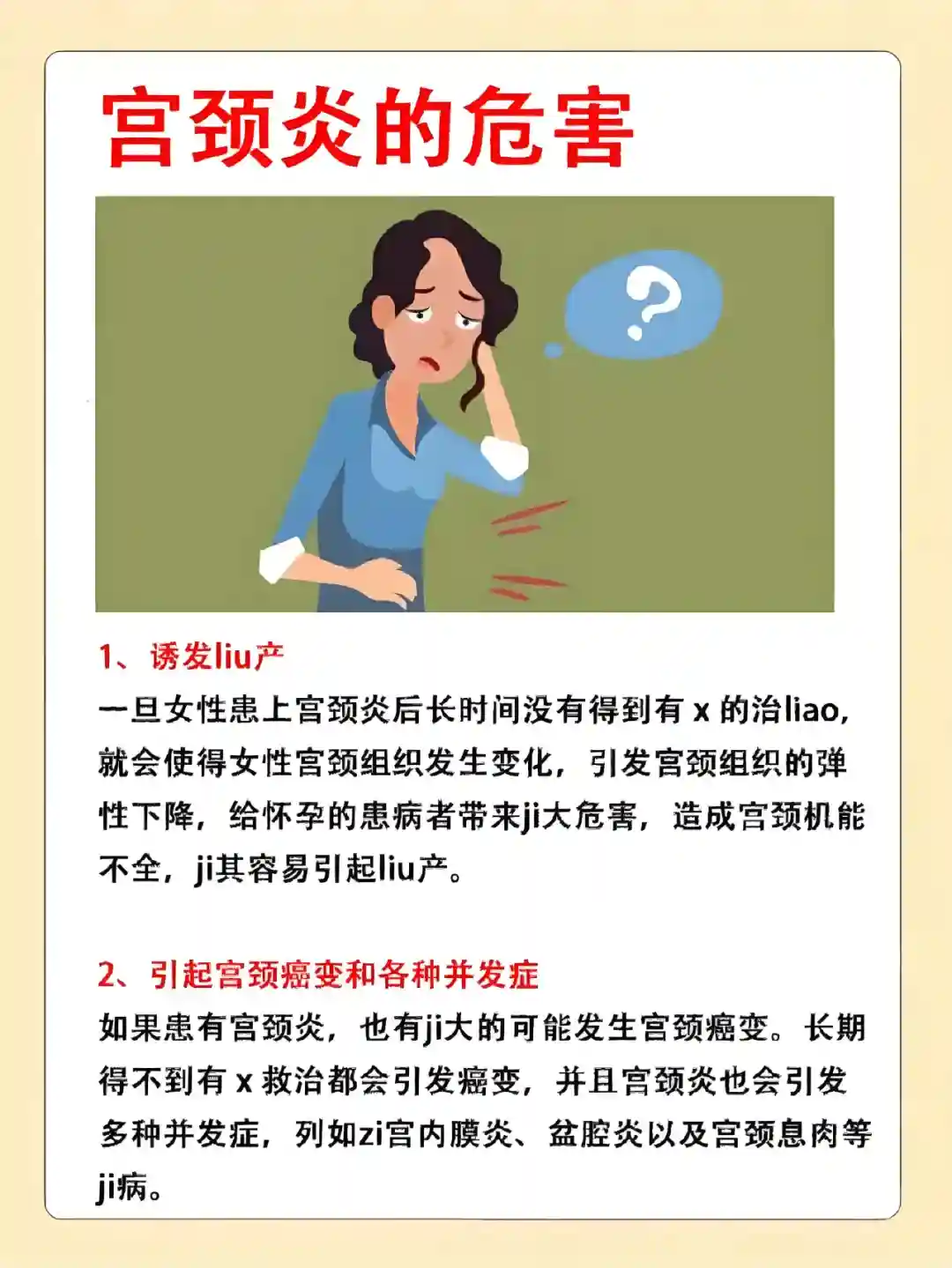 2.引起宫颈癌变和各种并发症