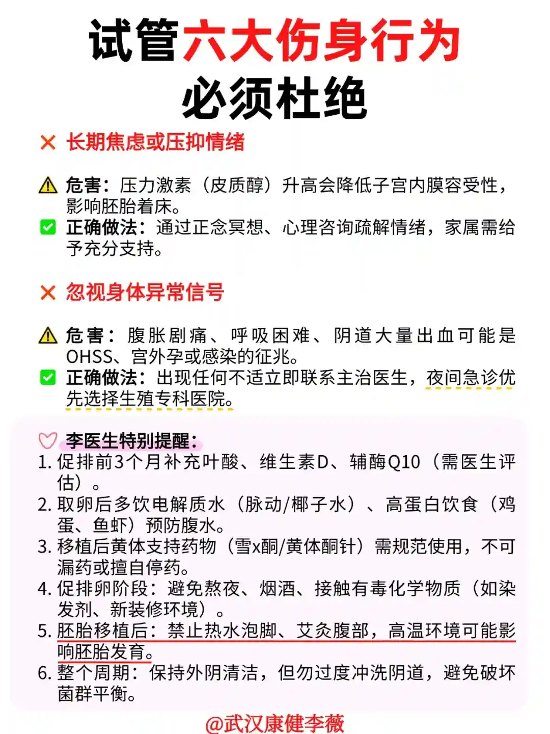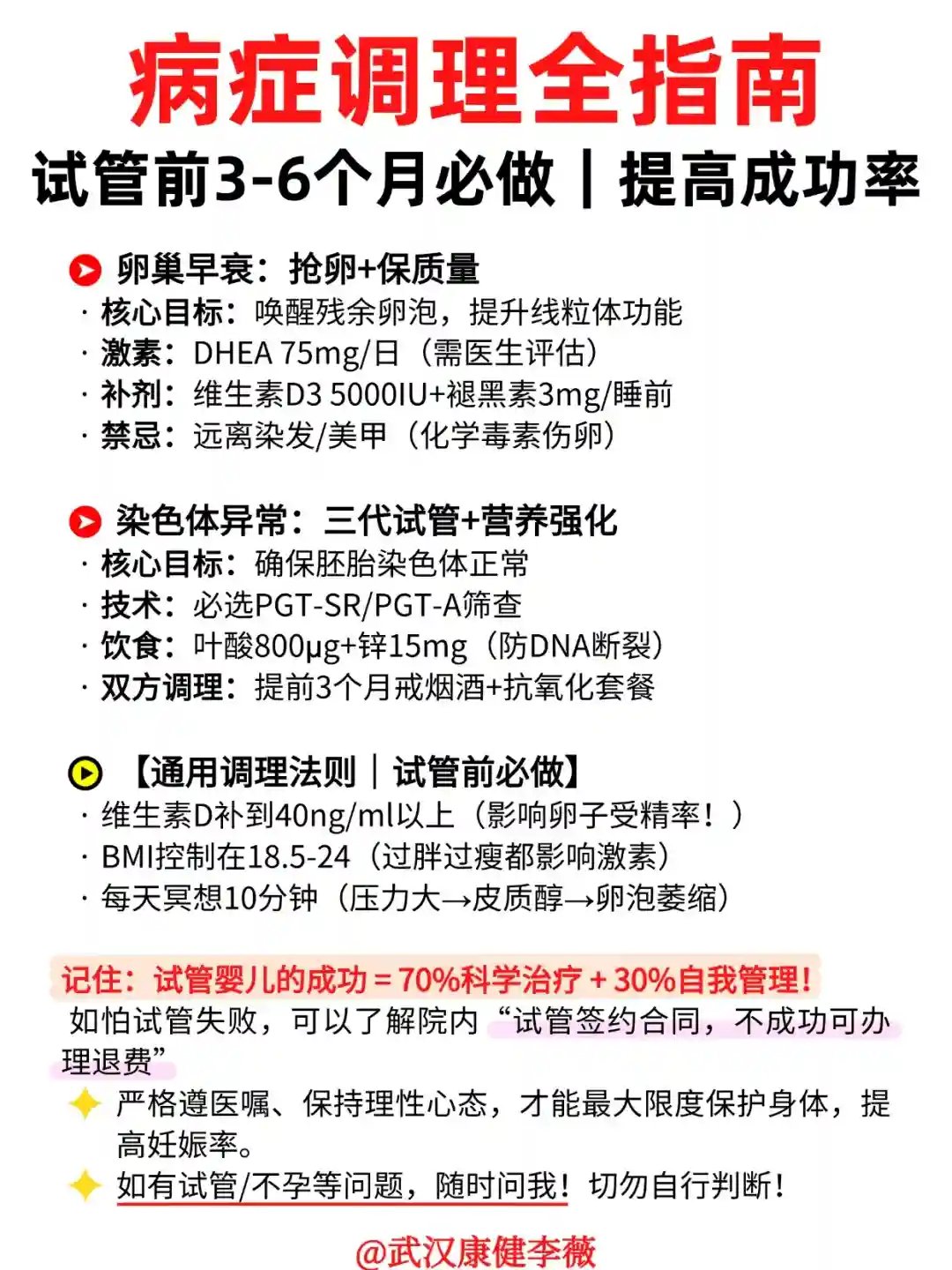 ⚠️记住:试管婴儿的成功 = 70%科学治疗 + 30%自我管理!