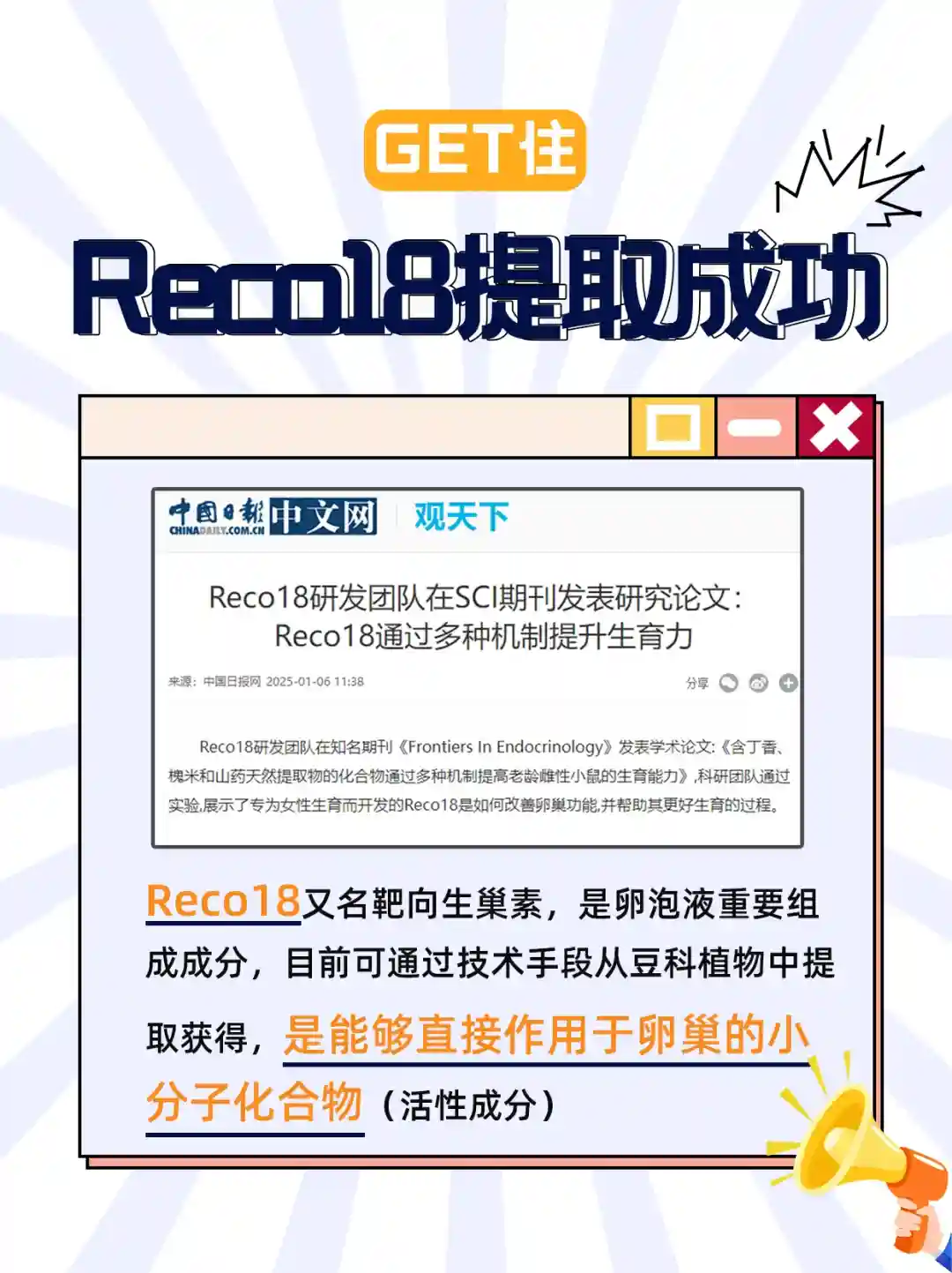 Reco18,是从豆科植物中提取的小分子化合物,是卵泡液重要组成成分。