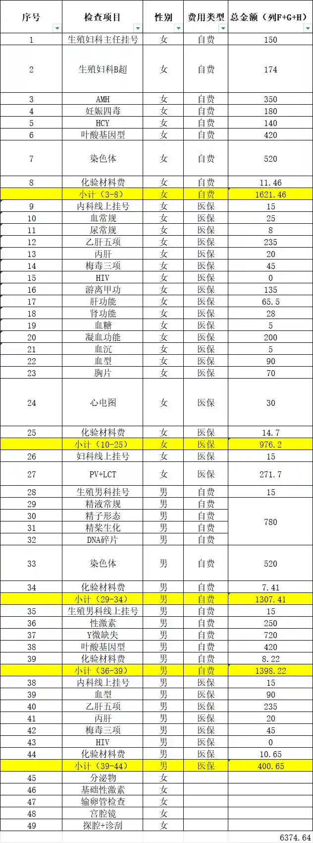 🌻男女总金额6374.64元(个人支付5799.11元+医保统筹575.53元)