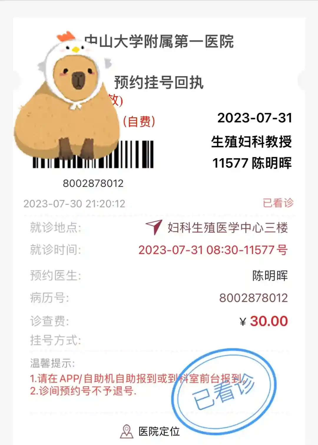 我在建档那天也挂了个号看看卵泡情况,被告知还未排卵,喊我月经第二天回院抽血查激素水平(八点半前)和照b超。因为还没开始打针,所以还不属于进周,没有铁牌号,所以月经第二天是我自己挂的号。实在不知道挂哪个教授的号,想着最贵的号应该就是最好的,就挂了陈明辉教授的号😳哈哈哈哈哈哈