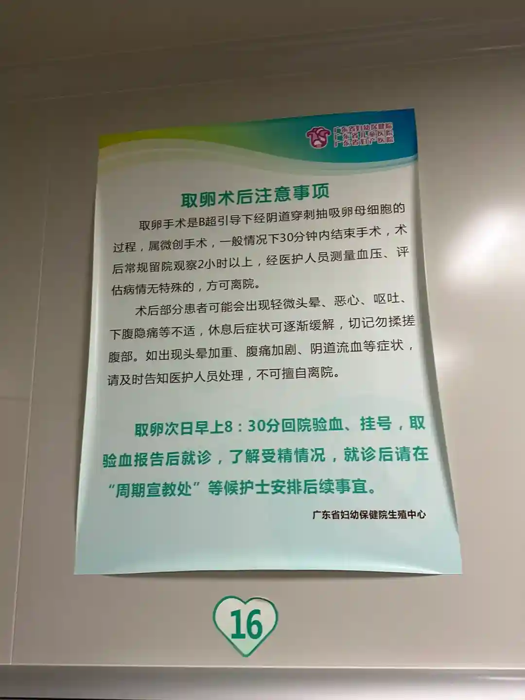 一切准备妥当之后就去旁边等待,第一次喊名字是让去洗手间尿尿的,第二次喊名字就是取卵了。取卵过程一半不超过30分钟。取完卵之后有阿姨会帮你移到床上休息,我当时是麻醉没过 所以睡了一个多小时,走之前需要上厕所确定自己出血量多不多,少量是正常的大量需要找护士说明,然后剪手带 量血压结束。因为之前有麻醉经历没想到这次麻醉出去之后就吐了。至此 取卵结束。