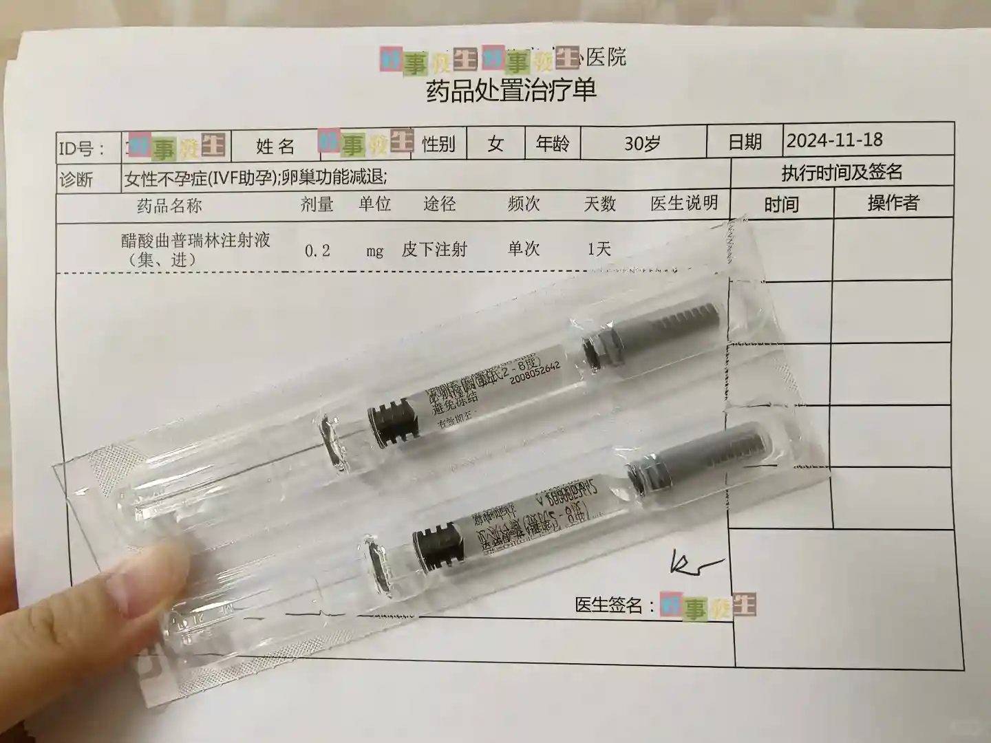 11月18日今天返院复查,卵泡果然还是没有排(之前有过2次监测排卵,打了hcg破卵针还是不排的经历),卵泡长到22mm了,医生说这次换一种破卵针试试,于是喜提达必佳,而且是2针