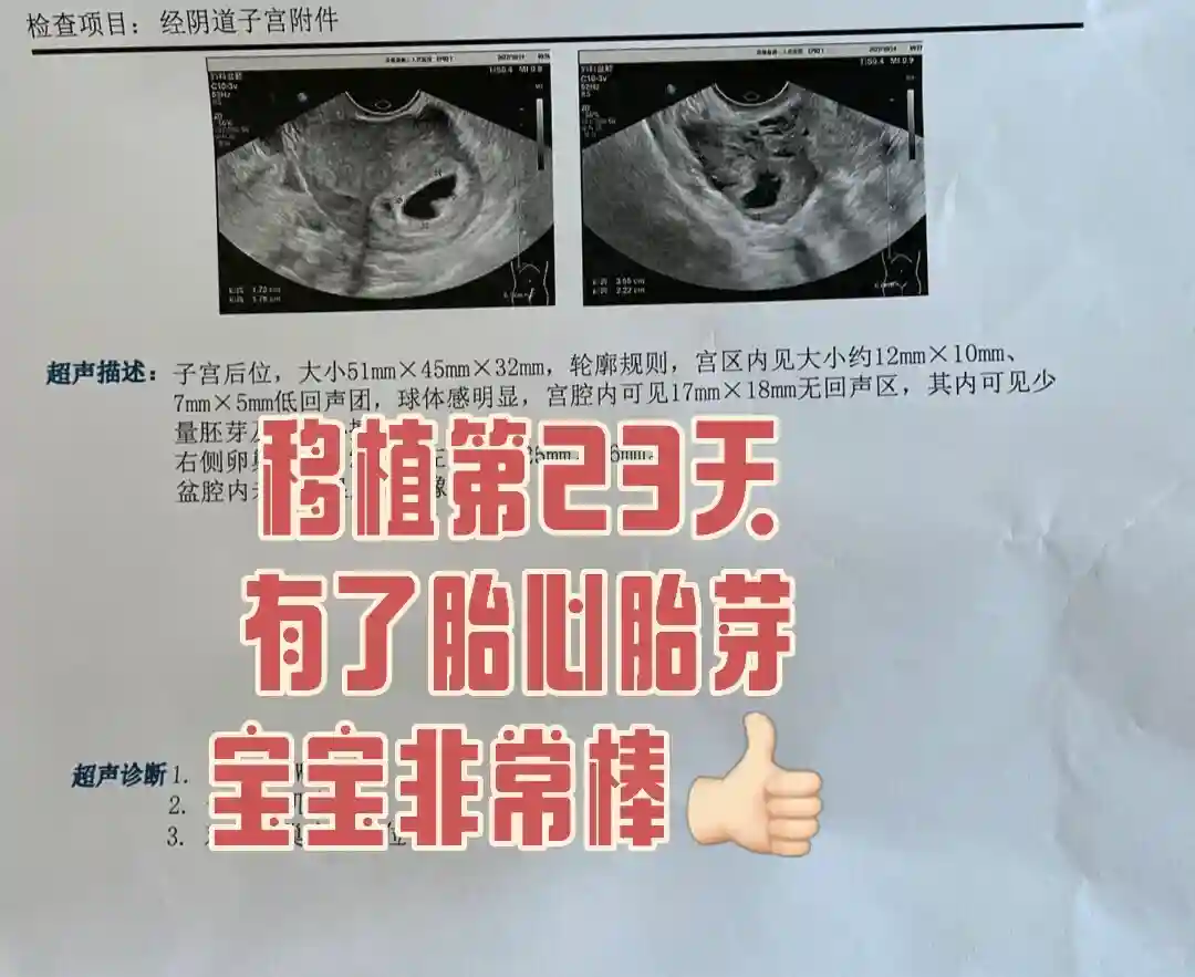 在第23天就去做了B超,宝宝发育得很好,胎心胎芽都有了!医生说基本安全了,接下来就是安心养胎啦!已经现在开始有了孕吐反应,不过问题不大。💁给姐妹们的建议: