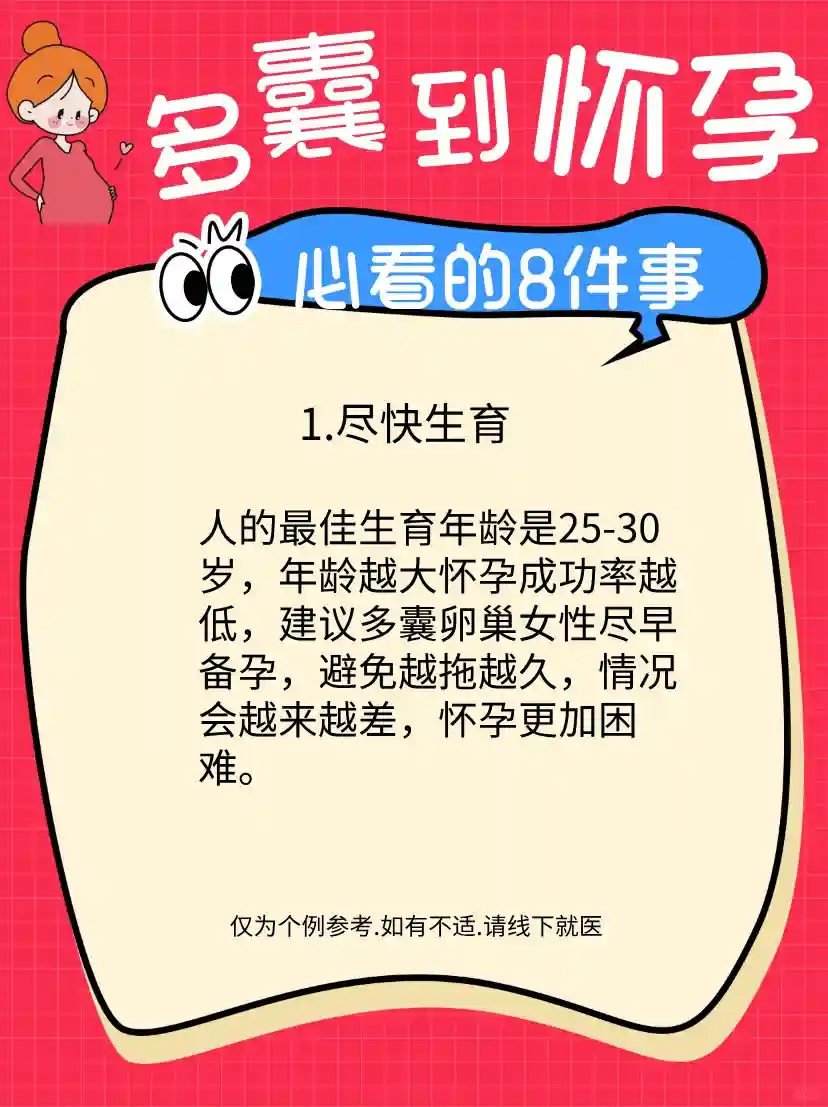 人的蕞佳生育年龄是25-30岁,年龄越大怀孕成功率越低,建议多囊卵巢女性尽早备孕,避免越拖越久,情况会越来越差,怀孕更加困难。