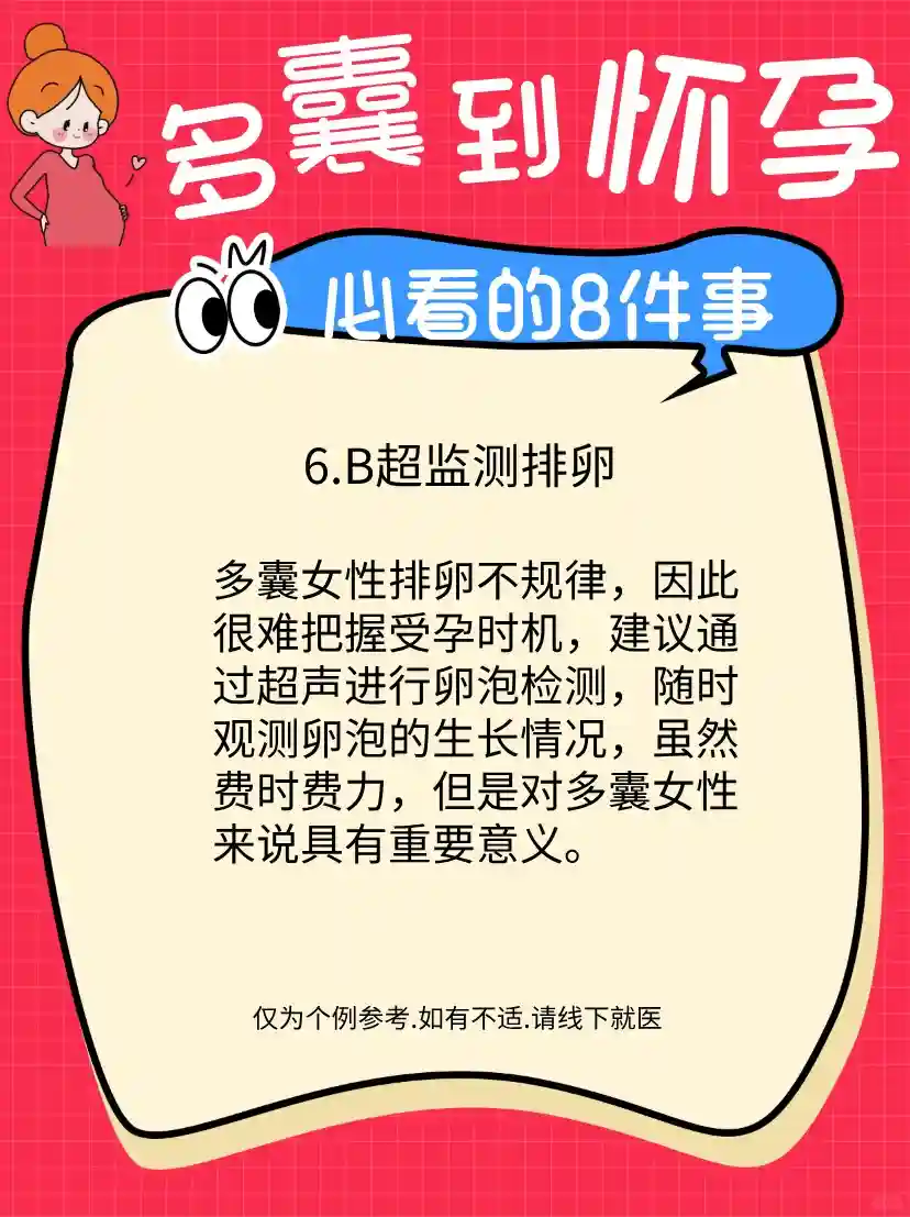 多囊女性排卵不规律,因此很难把握受孕时机,建议通过超声进行卵泡检测,随时观测卵泡的生长情况,虽然费时费力,但是对多囊女性来说具有重要意义。