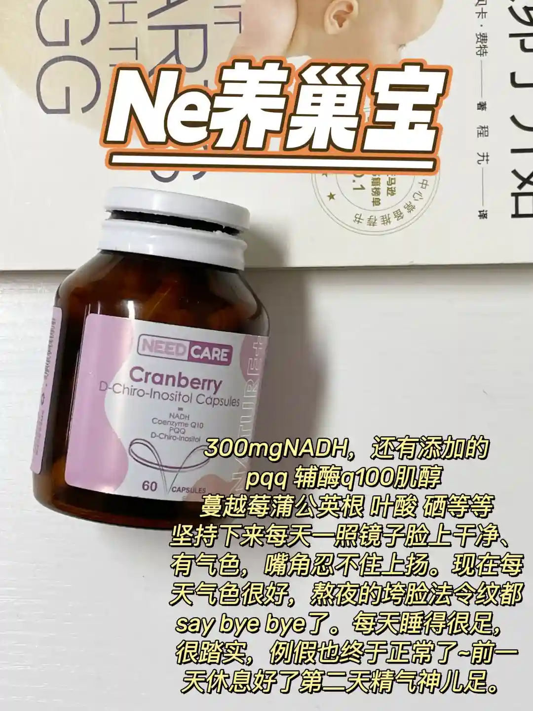 #ne养巢宝,含有pqq、辅酶q10 蔓越莓、肌醇、还有活性叶酸,硒一天吃2粒就够了,对早衰的营养补充也很到位,两个月,气色肉眼可见的变好了,坚持补到怀上,指标都被追回来了,也没有出现再晚上睡不着的情况,产检也是一路绿灯。-