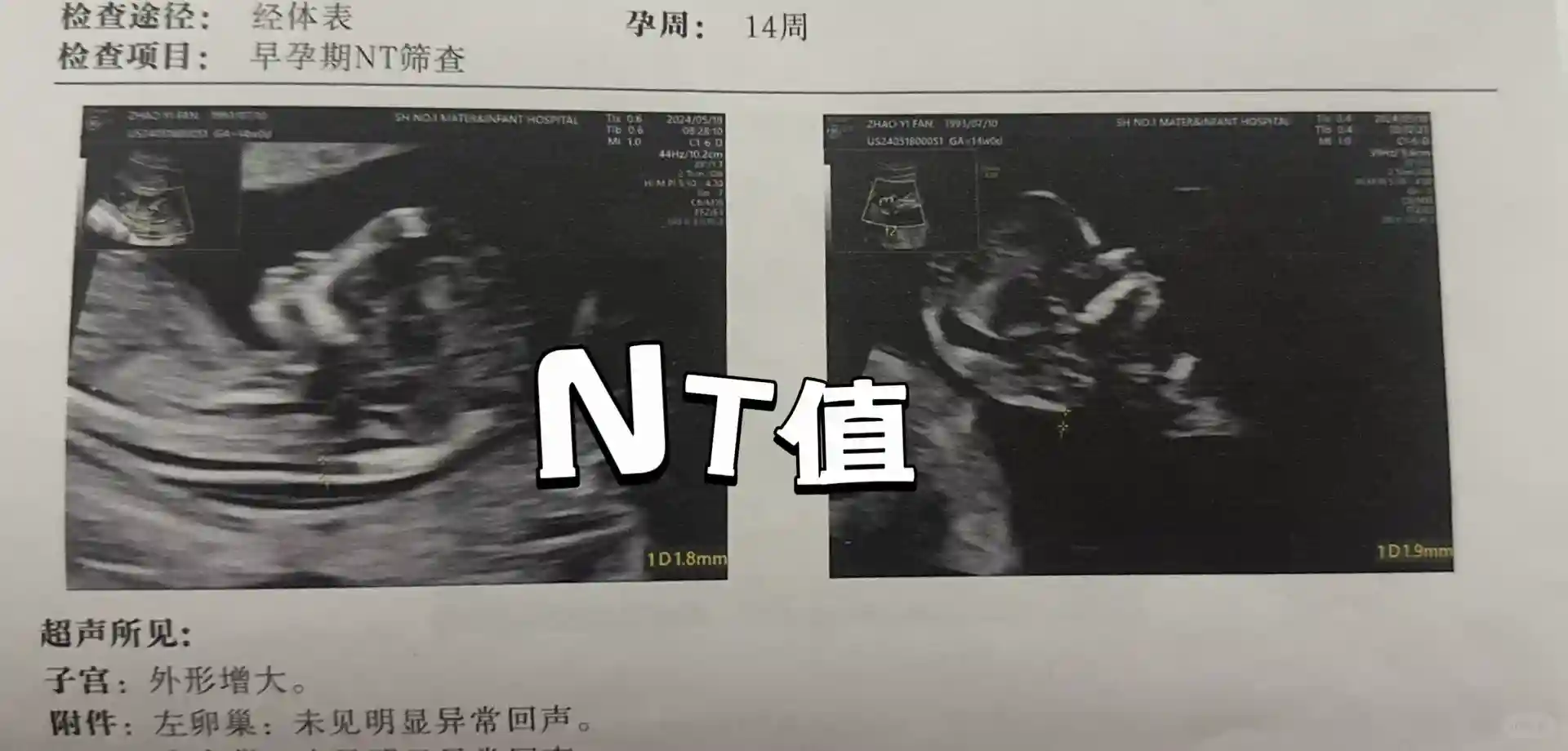 NT值:女孩<1.5,男孩>1.5