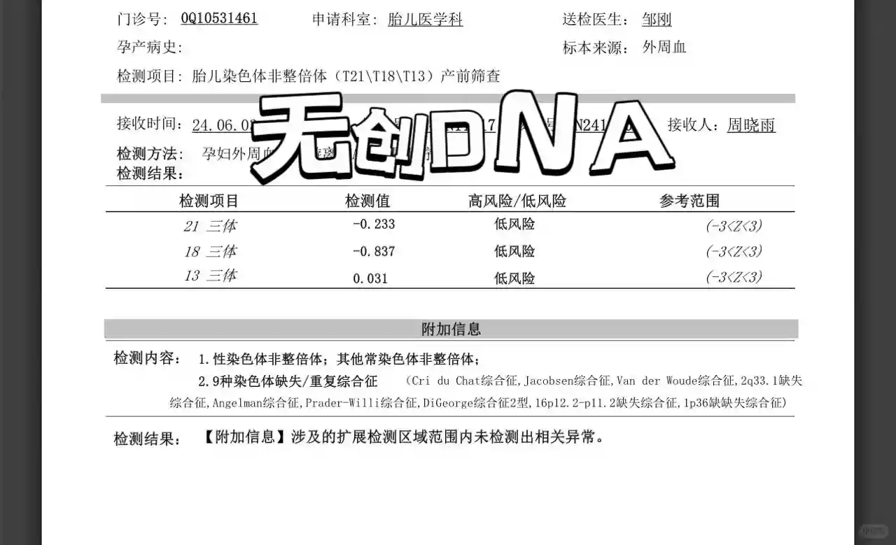 无创DNA数据: 13、18数值明显小于 21,则为蓝,反之是粉;13、18一个大于21,一个小于21,则算平均数;平均数小于21的数值则为蓝,反之是粉。