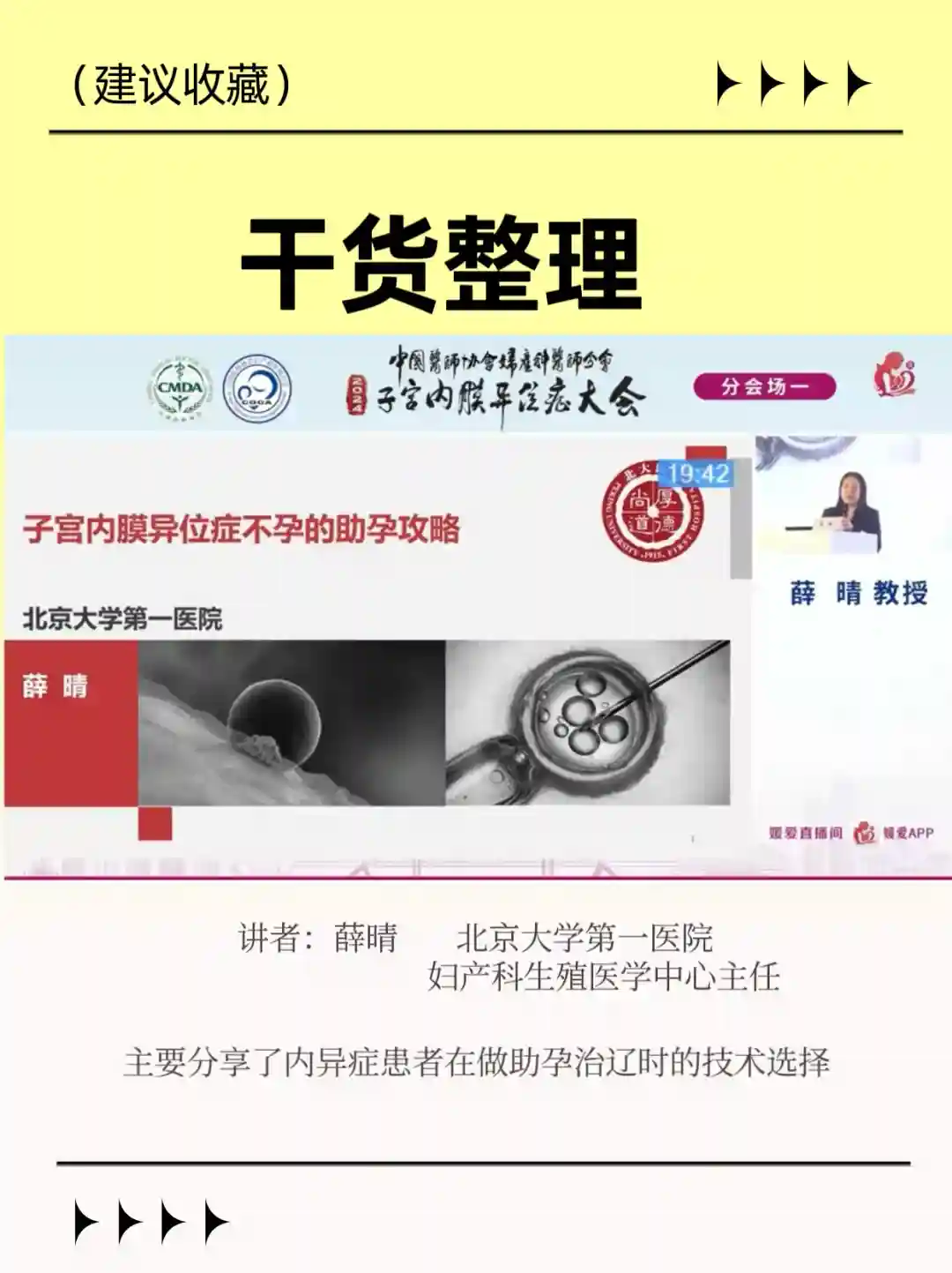 讲者:薛晴 北一妇产科生zhi🀄️心主任,分享了些不孕病例,很多很棘手的也都怀上了 所以姐妹们不要担心,交给科学与技术,相信缘分与命运!