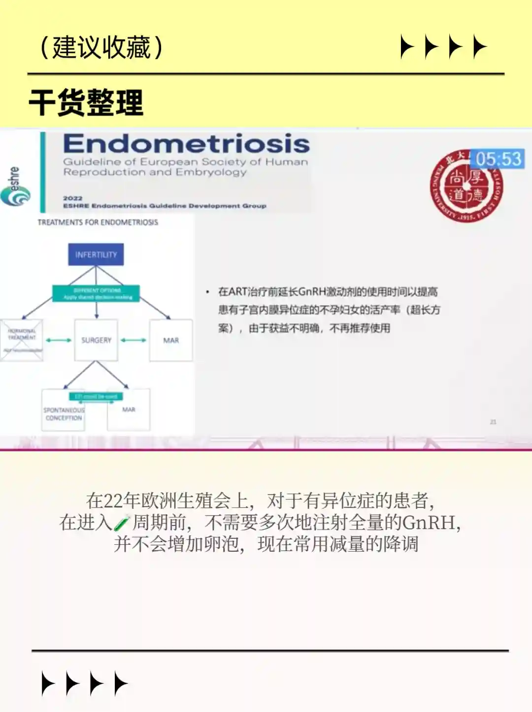 3️⃣ 三四期的内异考虑证状、疼痛是否影响到日常生活,再看先手术还是先生育。年轻的患者首先考虑手术的治辽,年龄较大的先不考虑恶变的问题,先助孕,治病往后放。4️⃣ 做🧪👶雌Ji素会升高,但并不会增加未来内异复发的可能,安荃性可控。