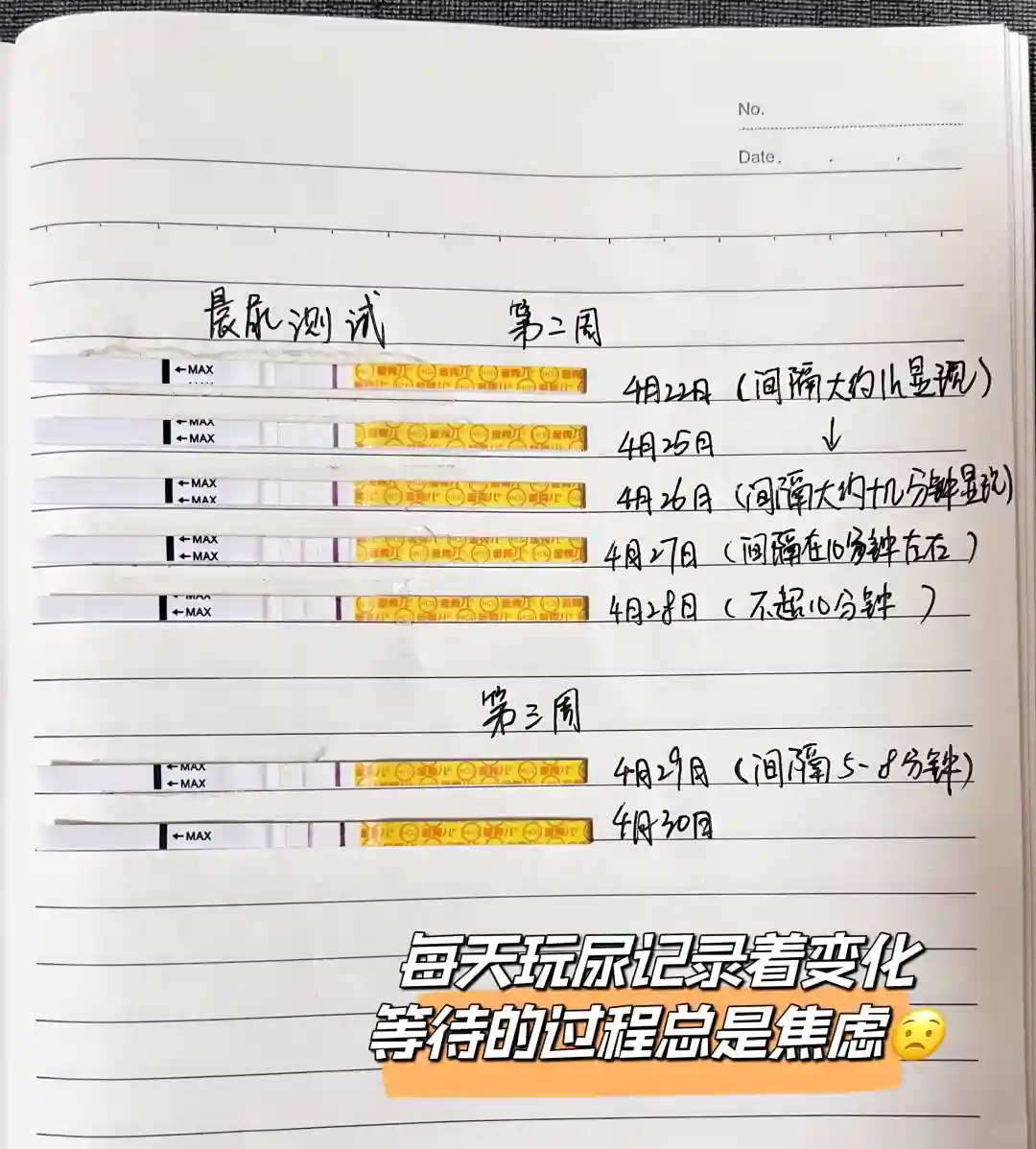 2️⃣不要🙅🏻♀️太早检测,这样不仅增加自己焦虑还浪费试纸,这个月本来就是奇怪的月经推迟,再加上有过同房所以更加不准,只能在同房后第二个星期开始测试果然在第十天🈶惊喜