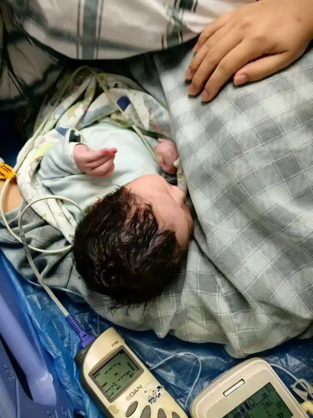 因为没有家属在(我一个人住院),家属来后谈话,准备东西,换衣服,弄头发,急急忙忙被推手术室(父母都忘记通知,我们手忙脚乱的收拾,手术室的床铺在等着一直催,要赶紧推进去)那时候来不及害怕,没有任何情绪,只想赶紧弄好,收拾好。家属身份证忘记带了,又要回去拿,又等了半个小时,这时候在产房里手术室外面躺着等(还好之前那台手术还没结束)。折腾到12点多进手术室,因为第一次很紧张:没打过腰麻(之前做痔疮、增生都是局麻)。剖开后,就听大白说还好你坚持剖,羊水污染了都是便便,当时肚子里小朋友居然没反应。小朋友出来后直接洗胃,弄出一杯(一次性杯子)的羊水,还好羊水污染不严重,处理及时,一般没有不良影响。