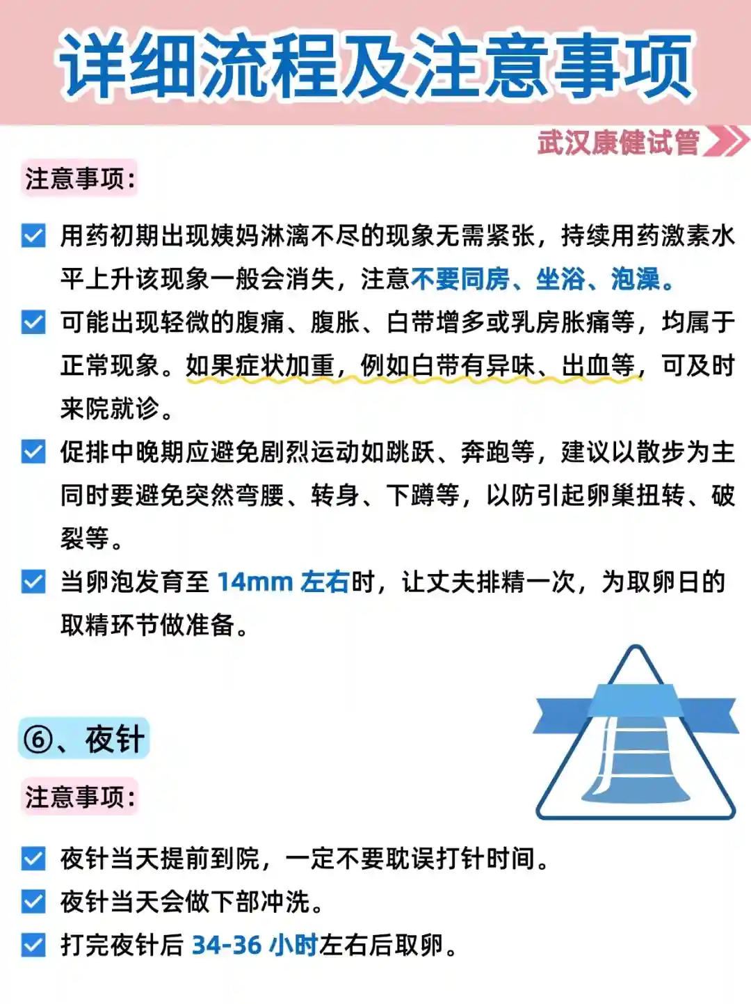 3⃣促排+打夜针+取卵:开始了试管的重要环节,在此环节中,需要打针、做B超、抽血看促排效果,等卵泡成熟,打夜针,过34-36小时左右取卵。