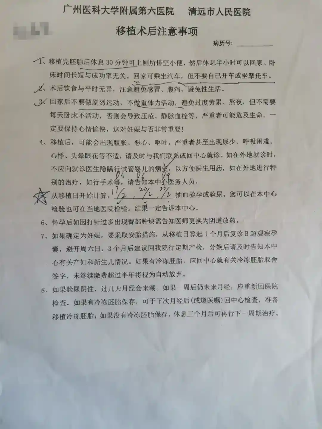抽血:移植后第3、6、9天回医院复诊抽血,第9天开奖喔