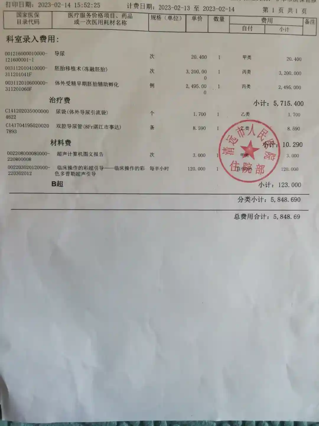 费用:解冻移植5849+打黄体酮1306+开药295+抽血126*3=7828元,大概就这些