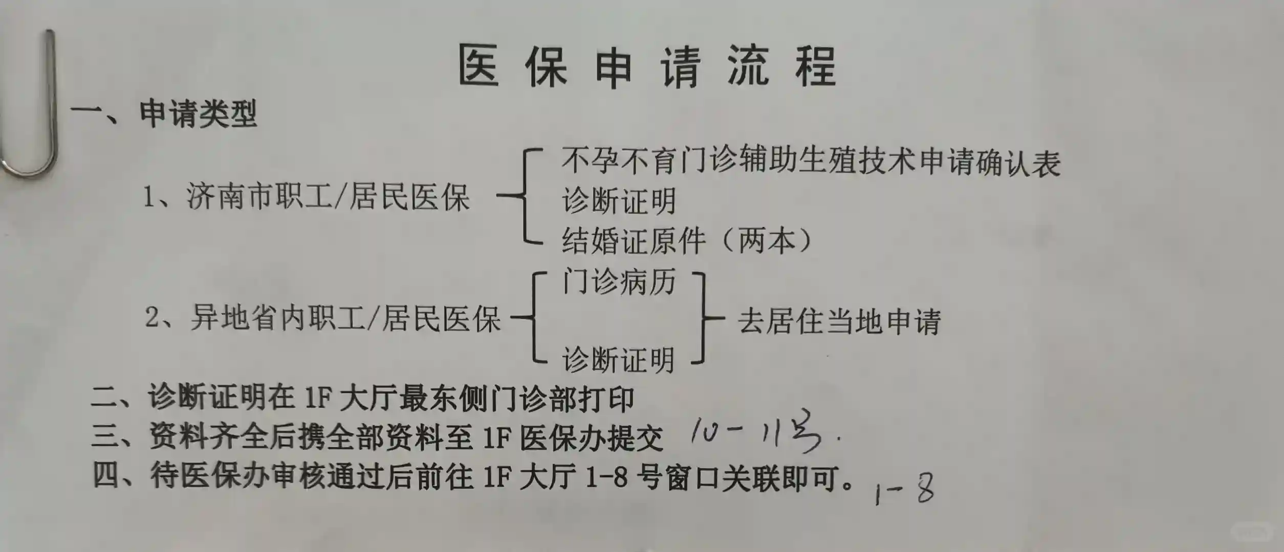 4、拿着盖章的诊断证明再回去找生殖科签个字5、拿着上面两个表,再加结婚证原件去一楼10、11医保办窗口(我去了又让我去了东侧综合服务部办理的,他们应该是分周一到周五和周六周日分别办理,都能办)