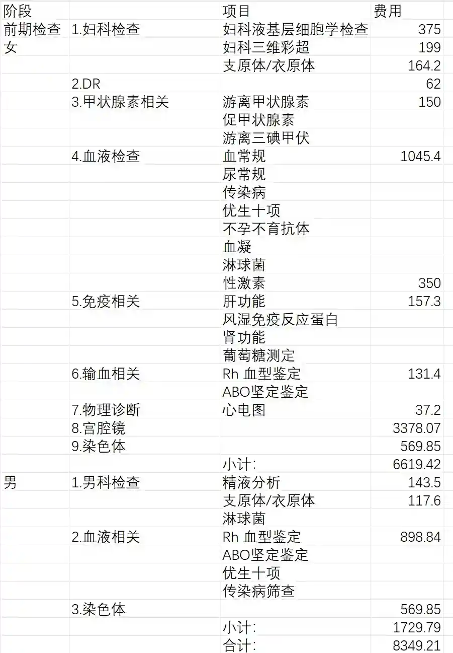 试管总费用:39748.8元1.前期检查 女:6619.42
