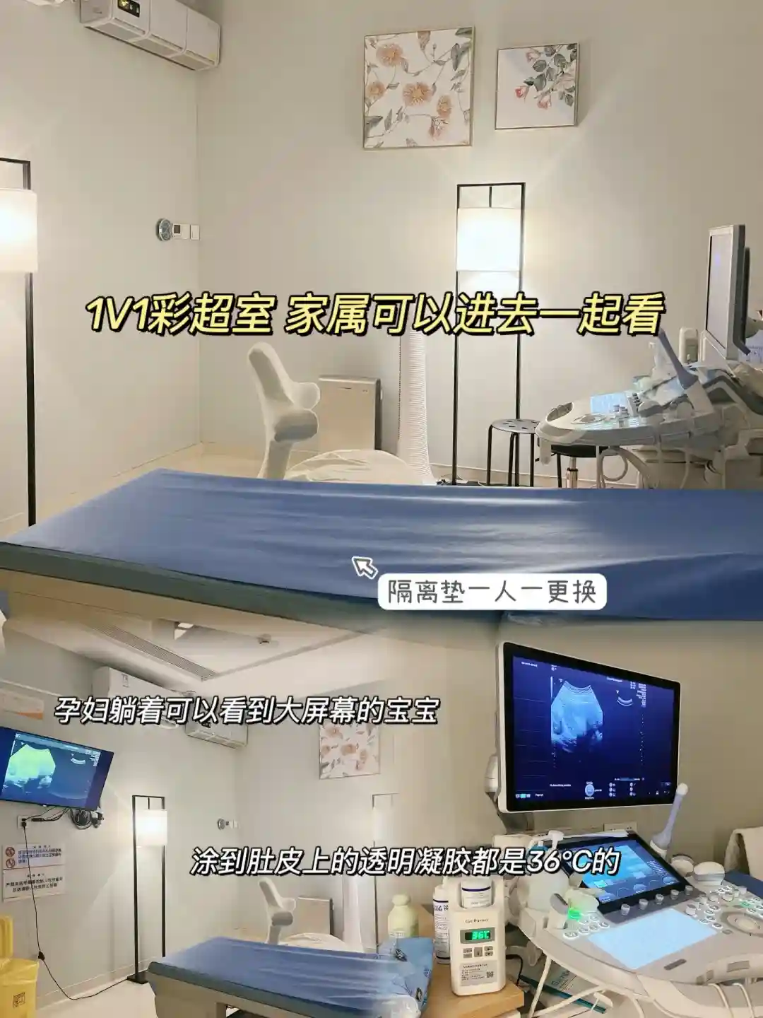 B超室是一人一诊室,很注重孕妈隐私。会有护士小姐姐给我腿上盖上毛毯,就连涂在肚子上的透明凝胶都是热乎的,这一点真的有被感动到!!做了那么多次孕检,头一次觉得自己产检是来享受的~✅医生看诊解答很详细