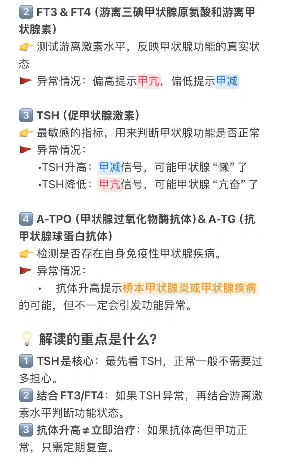 2️⃣ 结合FT3/FT4:如果TSH异常,再结合游离激素水平判断功能状态。