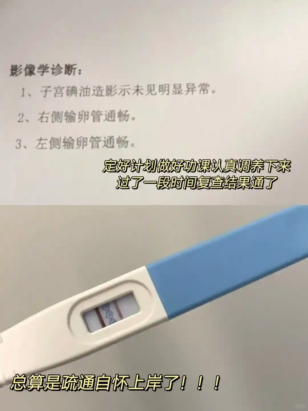 实在是没法子了抓紧去看了,才知道是输卵管堵了,当时刚结婚不久,和老公正准备要个宝宝呢,结果出了这档子事,真的很后悔之前没好好注意😭,回家以后听大白的建议开始调养,再加上自己也在做功课,制定好计划开始坚持,慢慢的感觉自己情况好些了,再去复查结果通了,现在宝宝已经进肚啦,检查也很顺 利🥰~~
