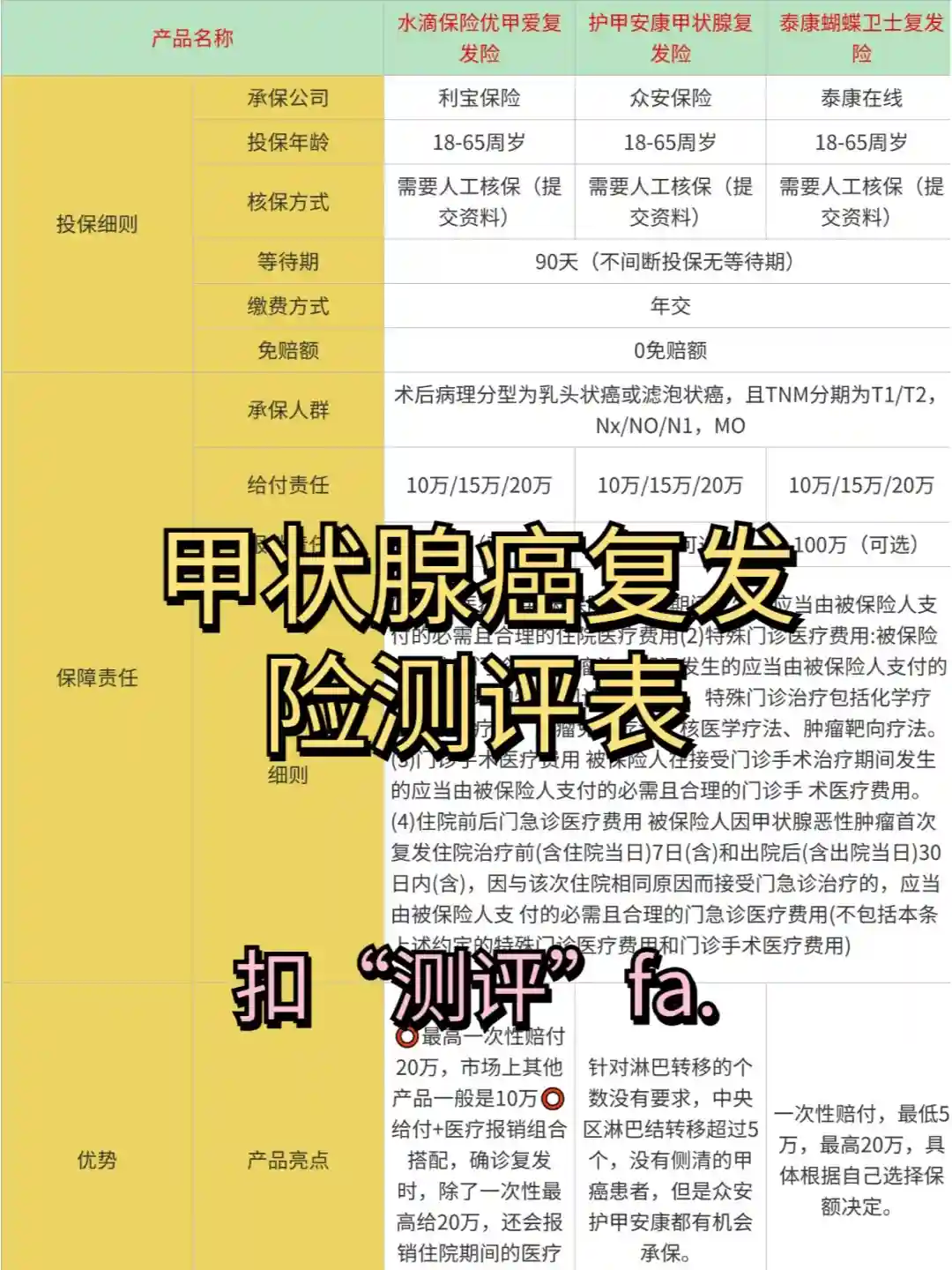 🟢🟢🟢我测评了市面上很多甲癌复发险,小红书有限制